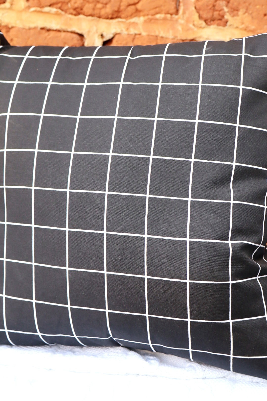 Capa de Almofada em Gorgurinho Grid Preta 45x45