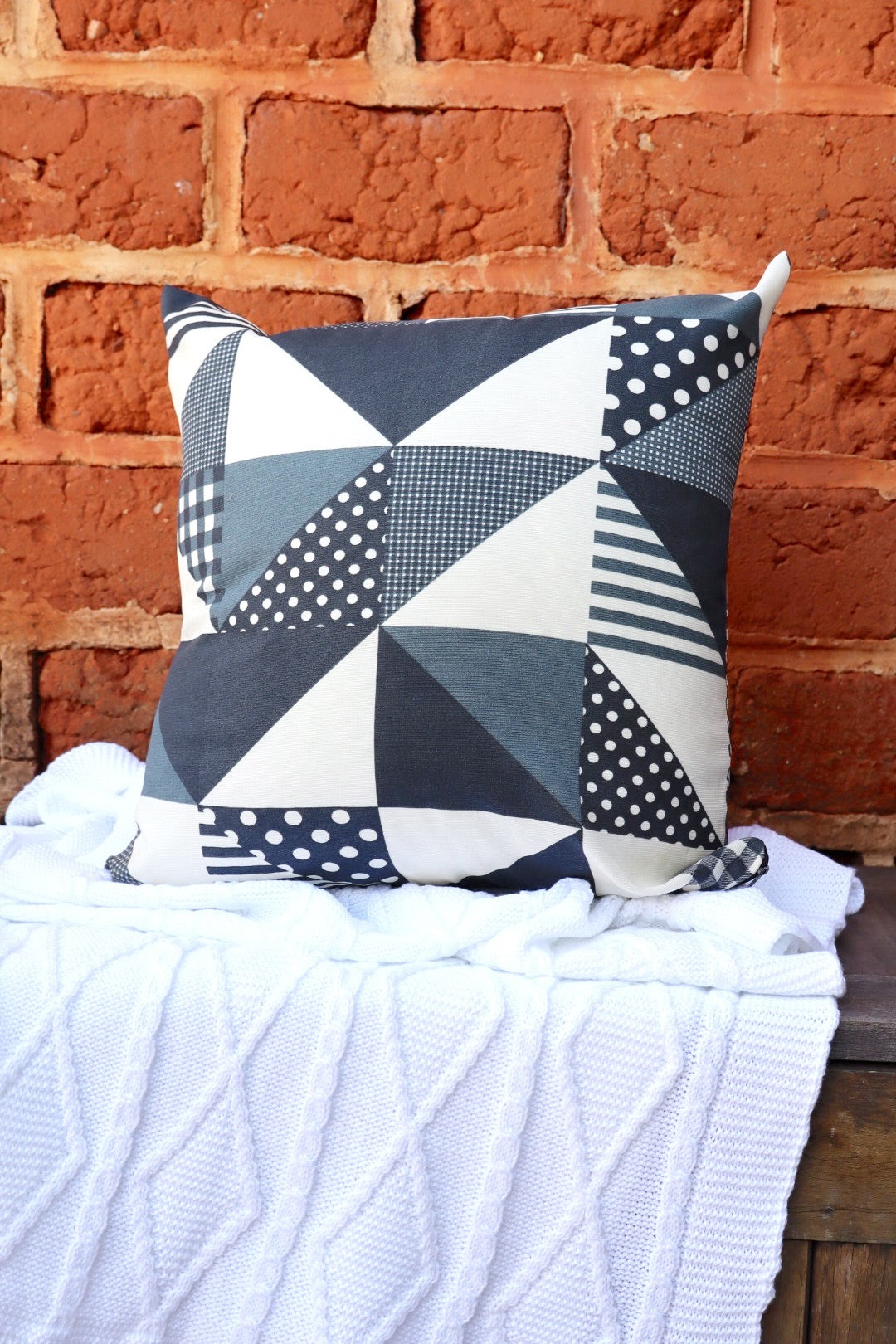 Capa de Almofada em Gorgurinho Triângulo Preta 45x45