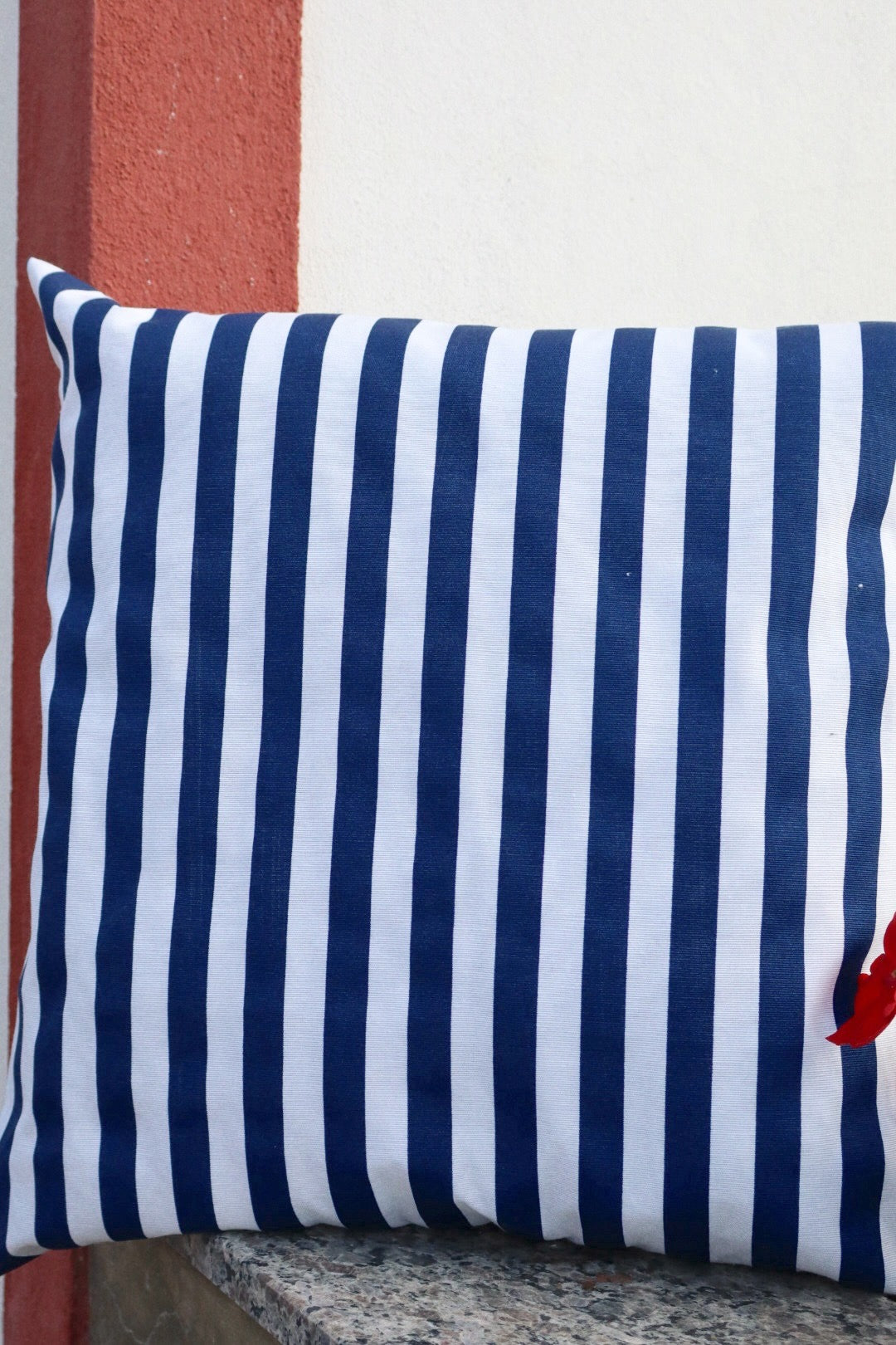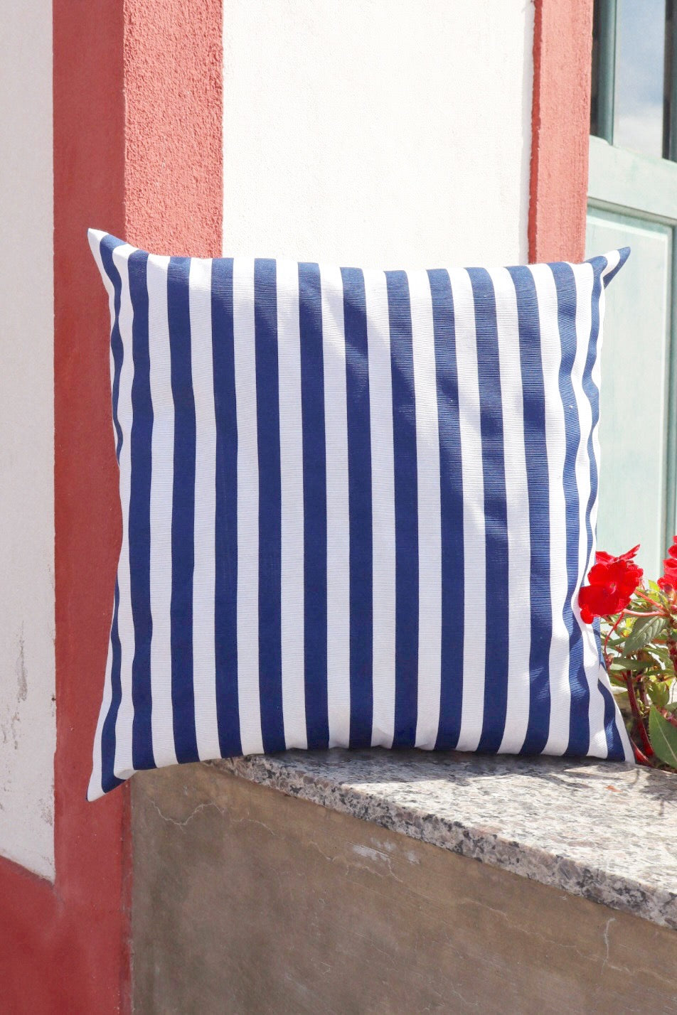 Capa de Almofada Impermeável Belize Listrada Azul e Branca 45x45