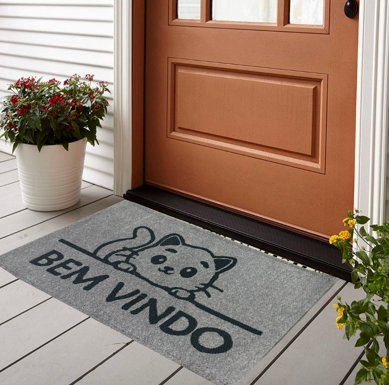 Capacho Tapete Entrada Bem Vindo Gatinho Cinza