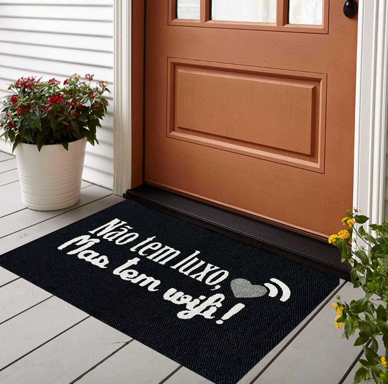 Capacho Tapete Entrada Não tem Luxo mas tem Wifi Preto
