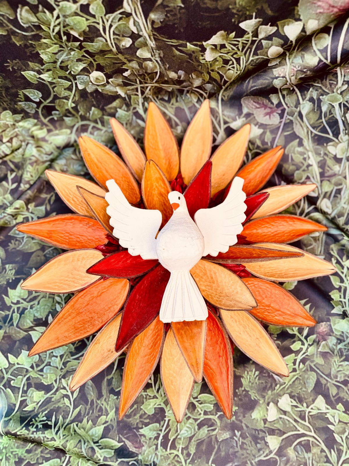 O Divino Espírito Santo é representado por uma pomba (mensageiro) branca (paz) e possuidor de 7 dons (sabedoria, entendimento, ciência, conselho, fortaleza, piedade e temor a Deus) simbolizados neste caso, pelo resplendor que o contorna.Como todos desejamos Paz, a peça é vista como um lindo presente a todos, religiosos ou não, inclusive para pessoas que estão em casa nova.
