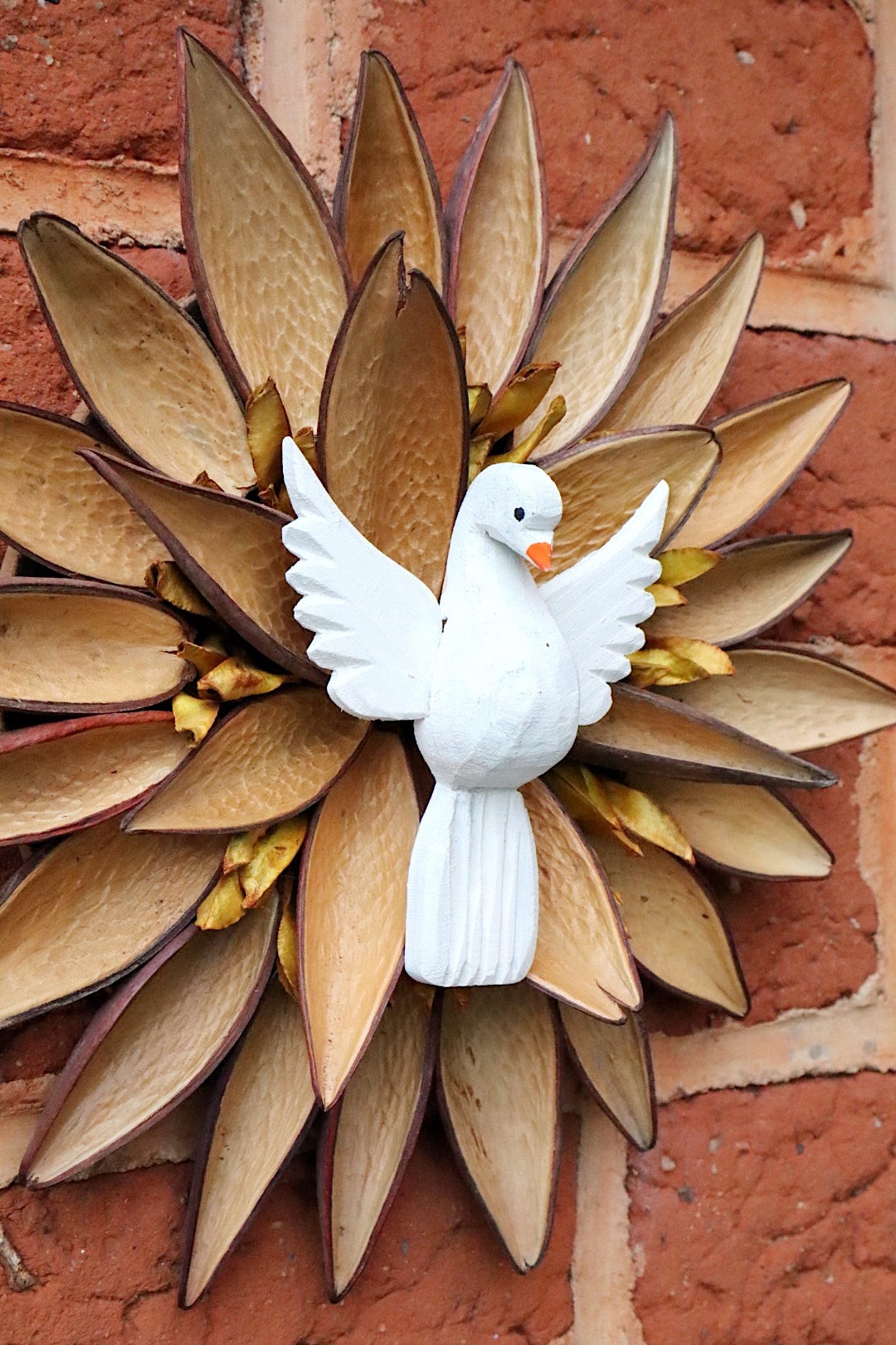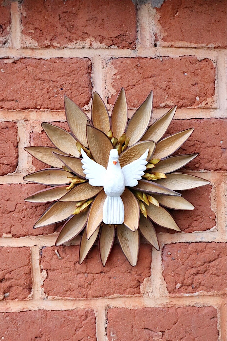 O Divino Espírito Santo é representado por uma pomba (mensageiro) branca (paz) e possuidor de 7 dons (sabedoria, entendimento, ciência, conselho, fortaleza, piedade e temor a Deus) simbolizados neste caso, pelo resplendor que o contorna.Como todos desejamos Paz, a peça é vista como um lindo presente a todos, religiosos ou não, inclusive para pessoas que estão em casa nova.