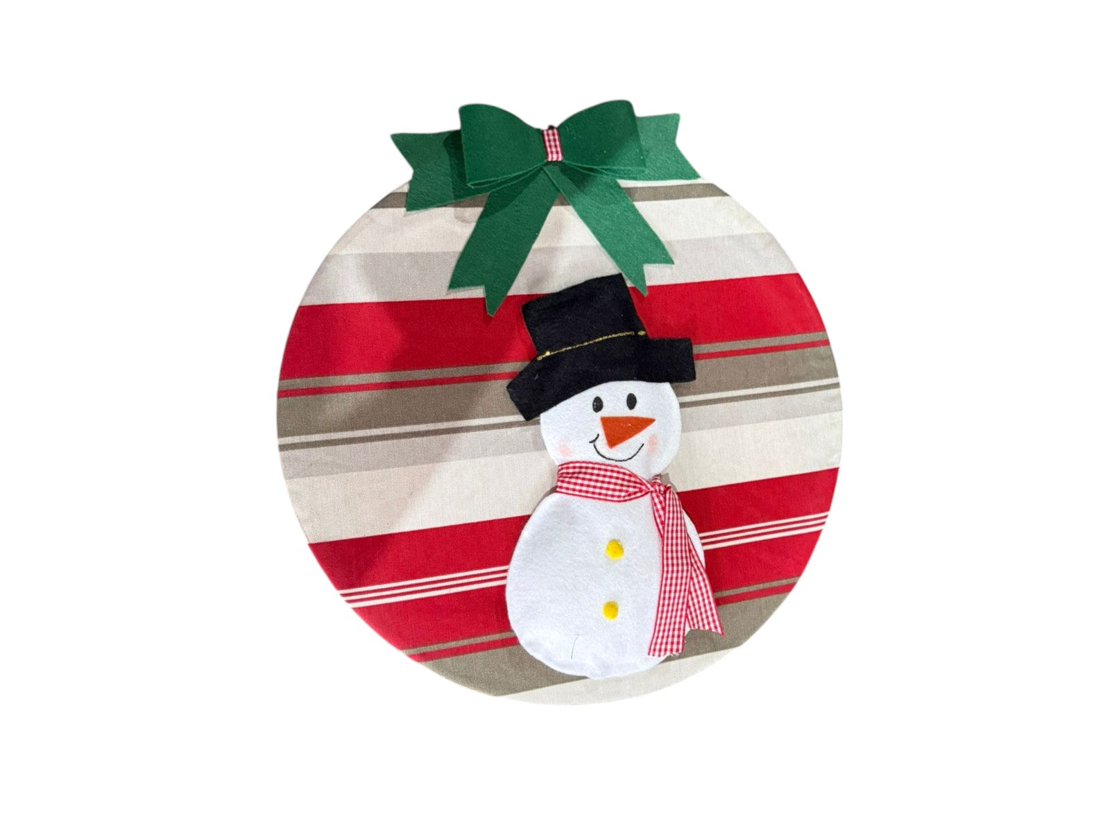 Enfeite de Porta Natal Boneco de Neve Listrado Vermelho em MDF com Feltro