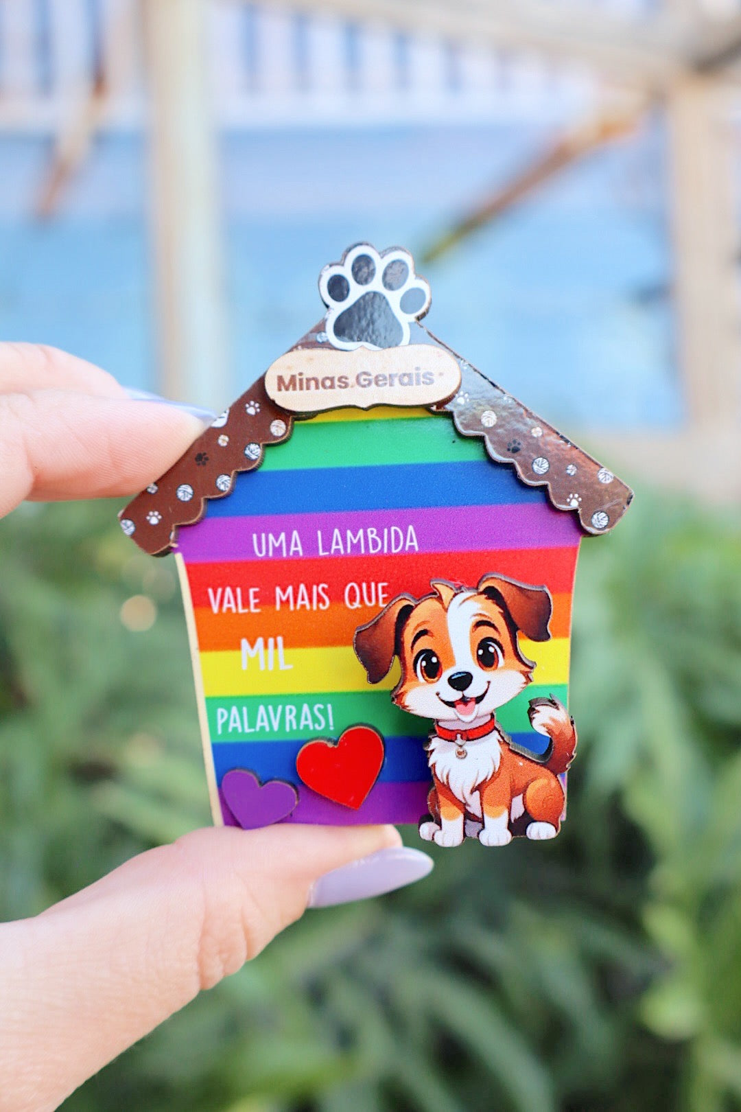 Este ímã de geladeira é uma lembrança perfeita para aqueles que amam Minas Gerais e cachorros. Com o pregador embutido, é uma solução prática para pendurar recados e fotos.