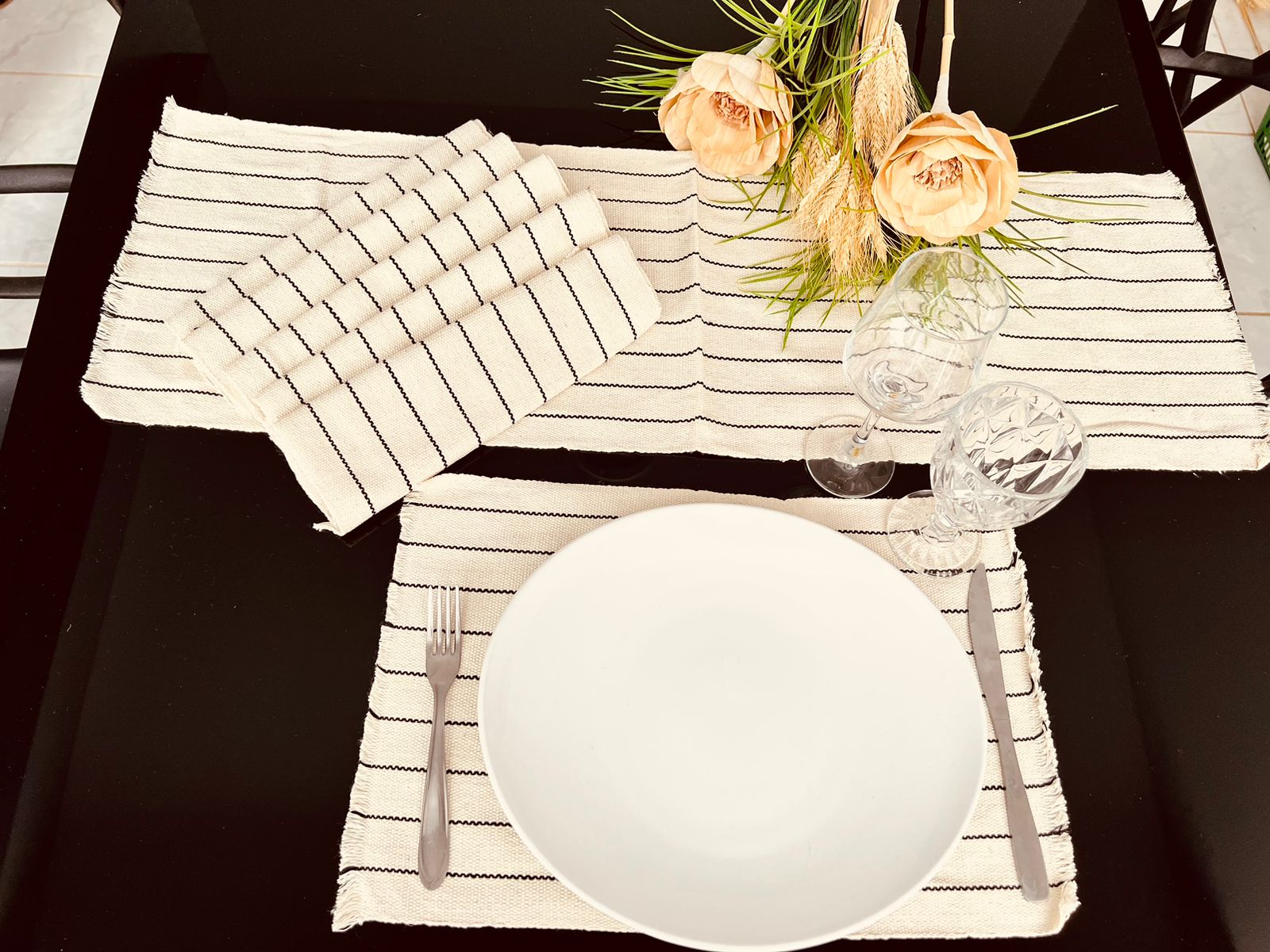 Jogo Americano Comum Cru com Listra Preta 7 Peças