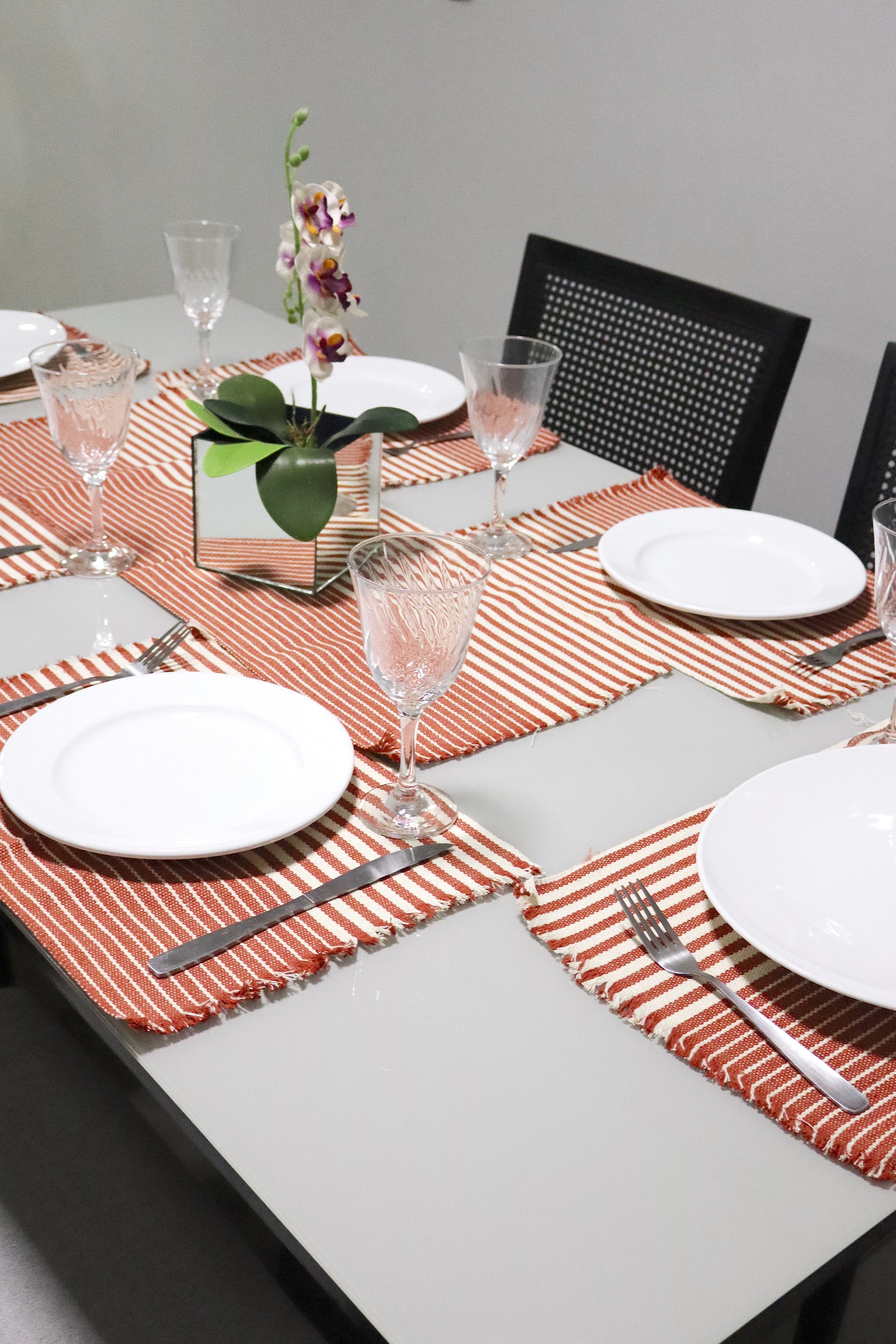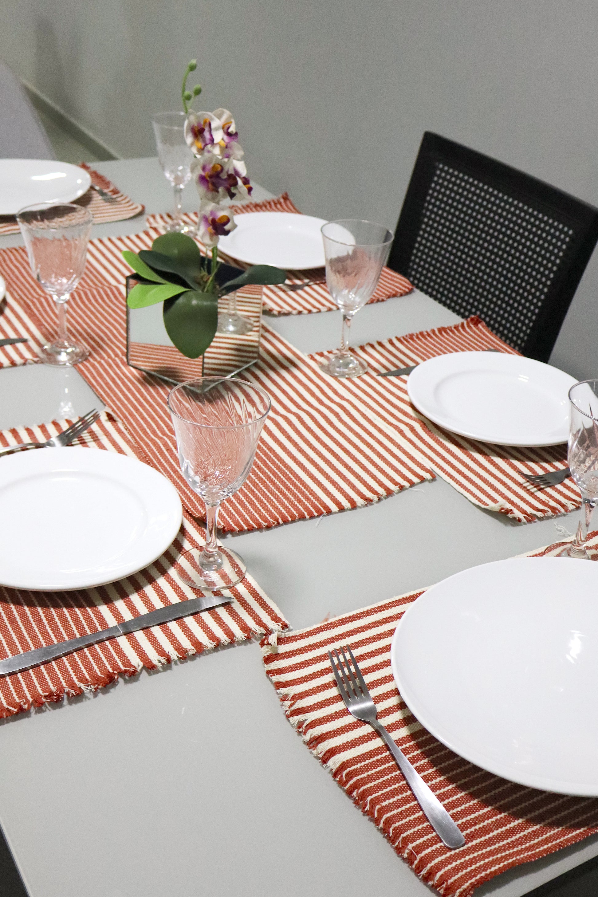 Jogo Americano Comum Terracota Listrado 7 Peças