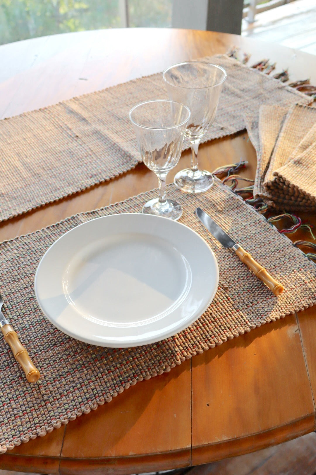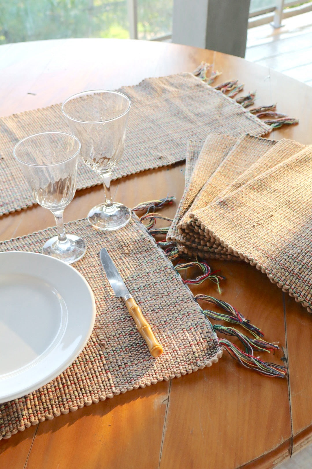 Conheça o Jogo Americano Malha 7 Peças - perfeito para sua mesa de jantar! Composto por 6 americanos e 1 caminho de mesa, esse jogo é feito no tear, garantindo qualidade e durabilidade. Adicione um toque elegante e prático às suas refeições.