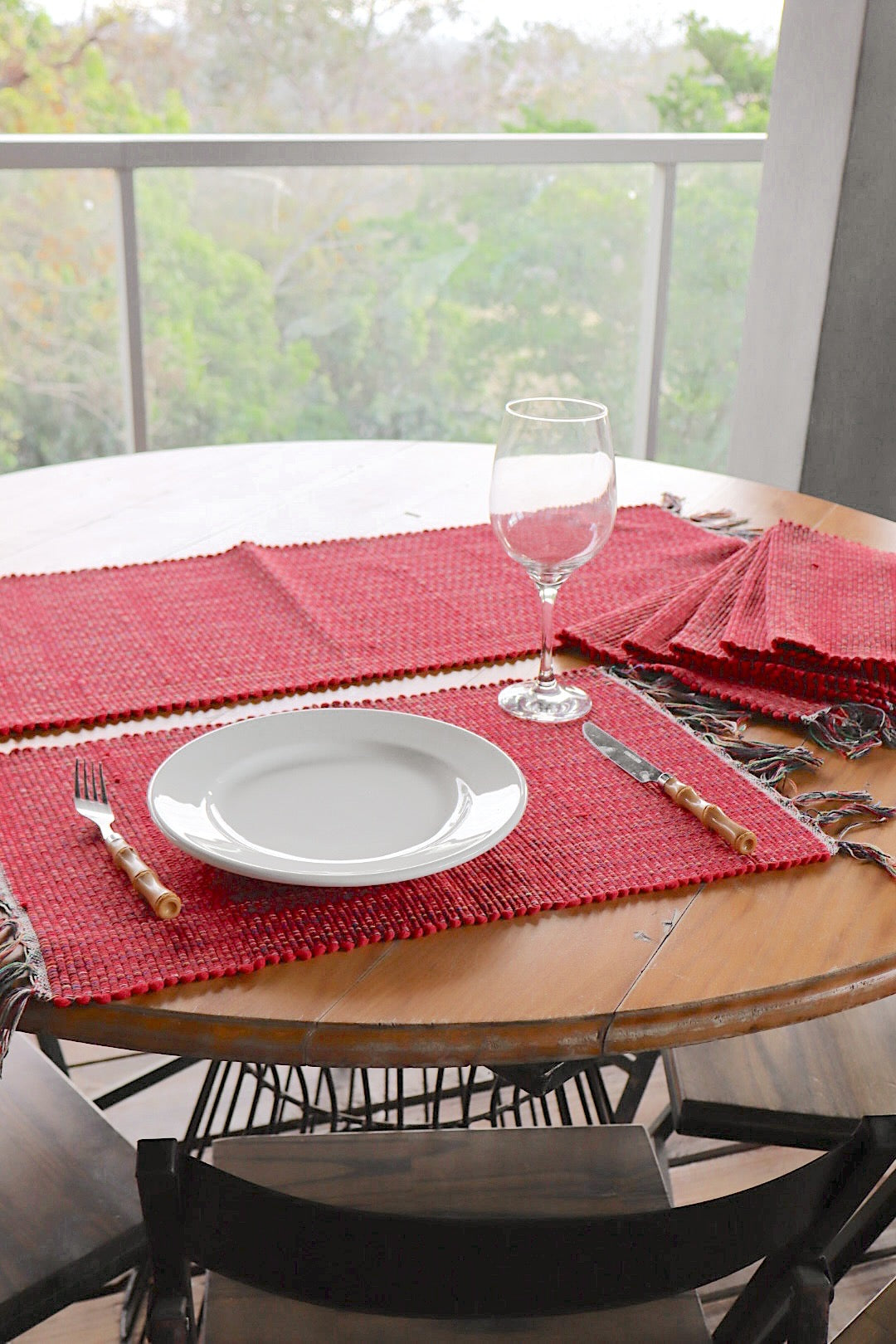Conheça o Jogo Americano Malha 7 Peças - perfeito para sua mesa de jantar! Composto por 6 americanos e 1 caminho de mesa, esse jogo é feito no tear, garantindo qualidade e durabilidade. Adicione um toque elegante e prático às suas refeições.