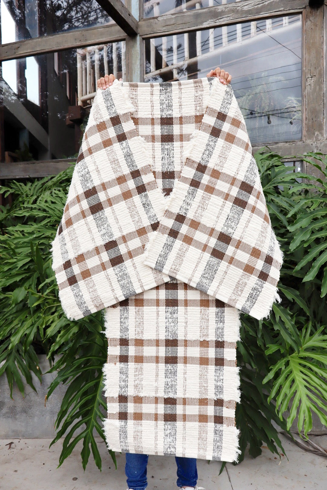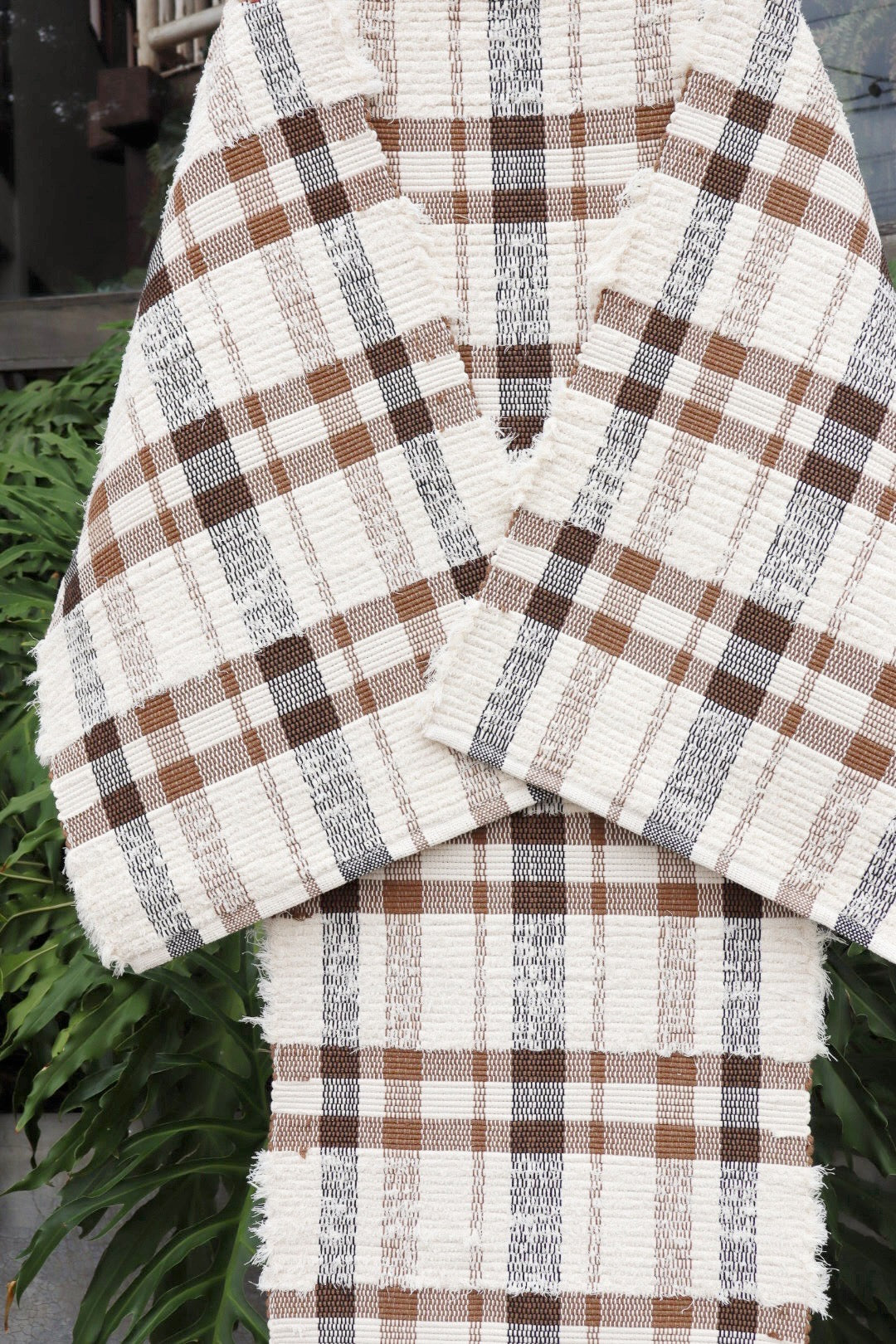 Jogo de Passadeira Felpudo Algodão Xadrez Marrom