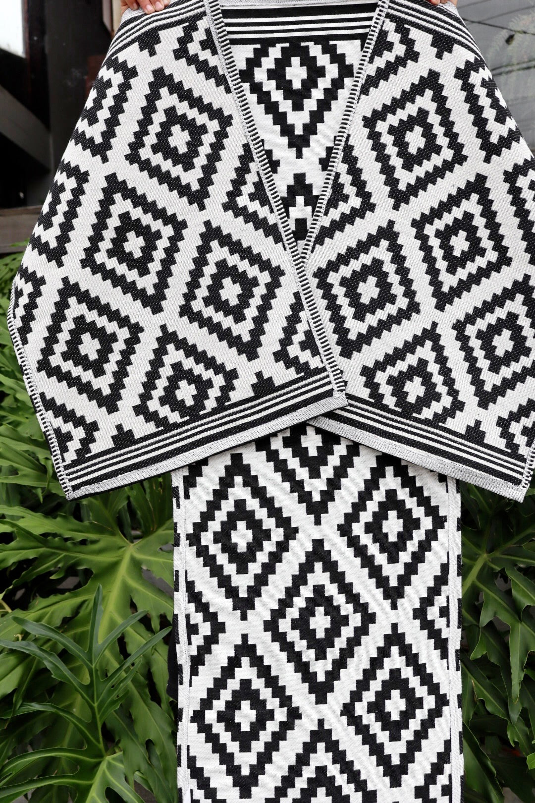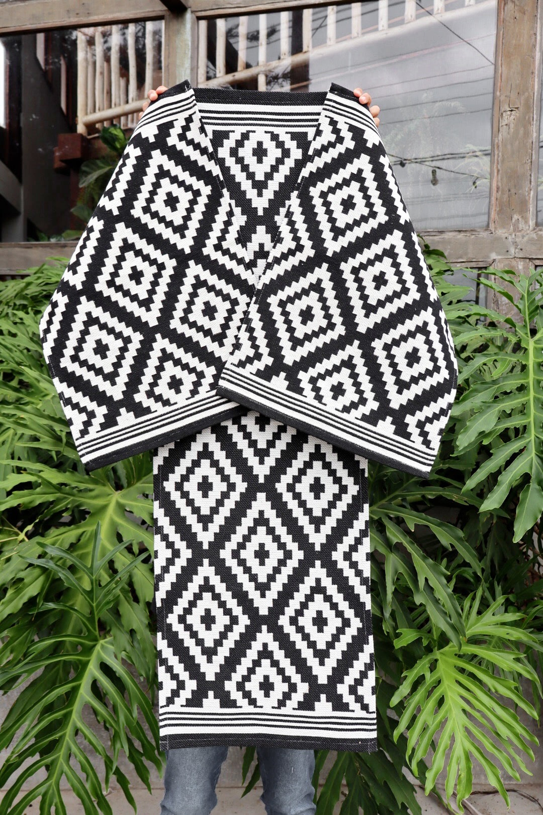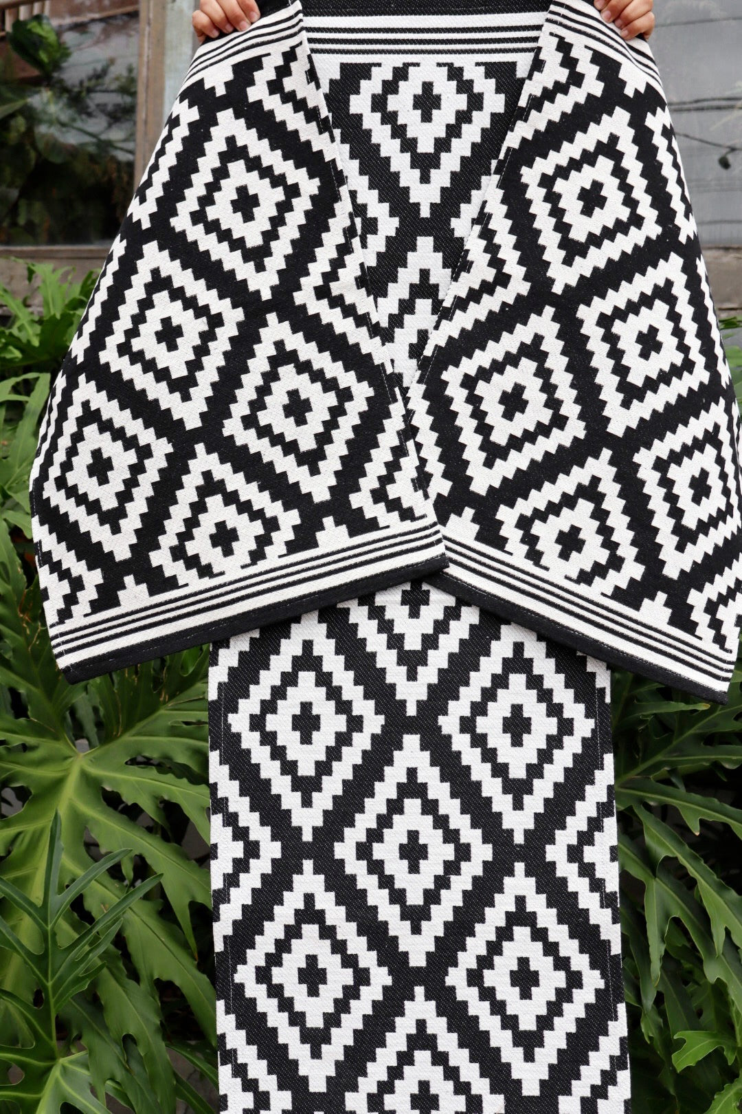 Jogo de Passadeira Algodão Indiano Dupla Face Marrocos Preto e Cru