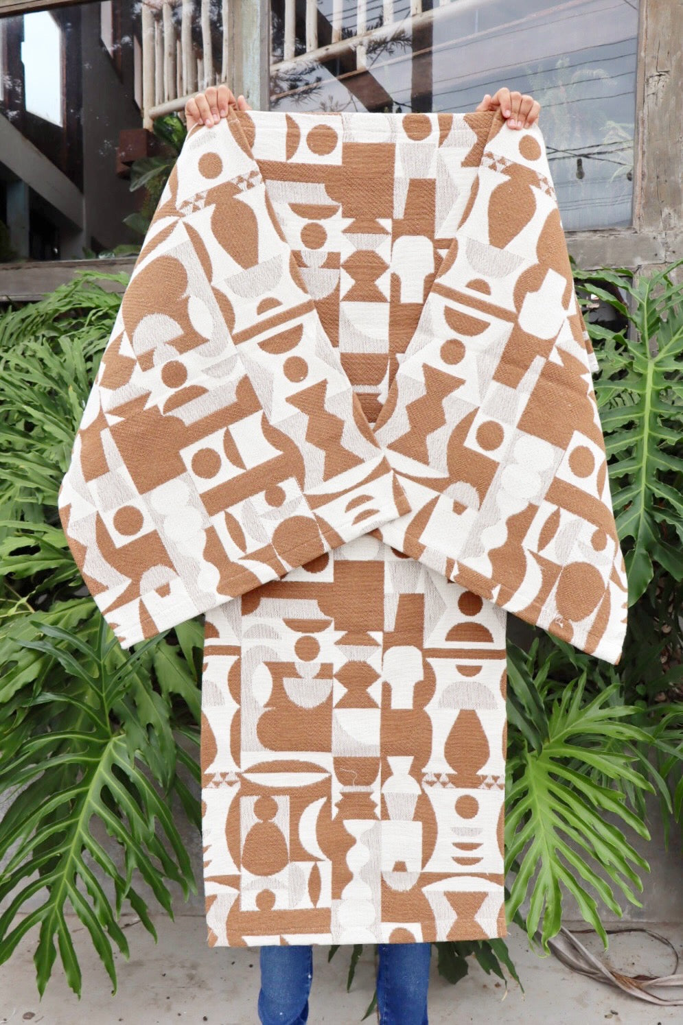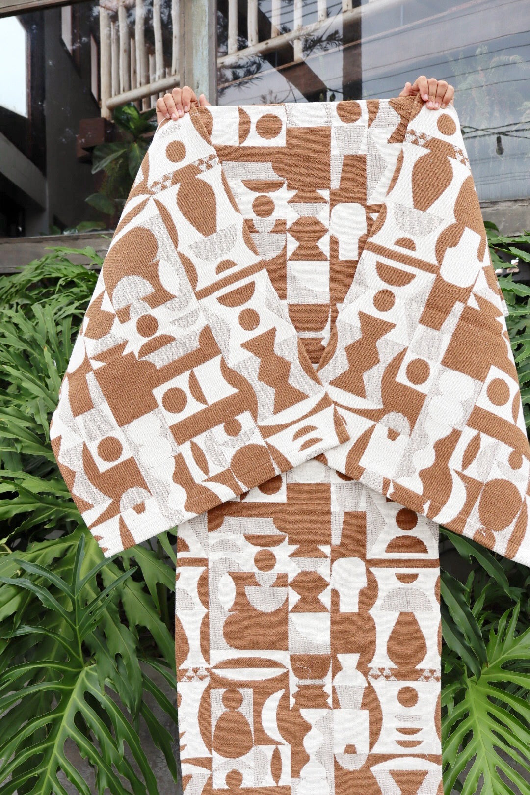 Jogo de Passadeira Algodão Geométrico Caramelo