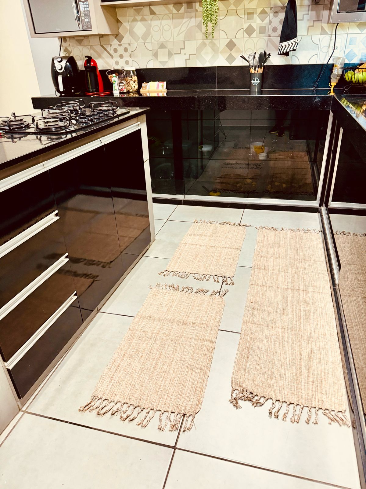 Todos os nossos tapetes são feitos de forma manual, artesanalmente, podendo ocorrer uma variação de até 10% no tamanho, para mais ou para menos.