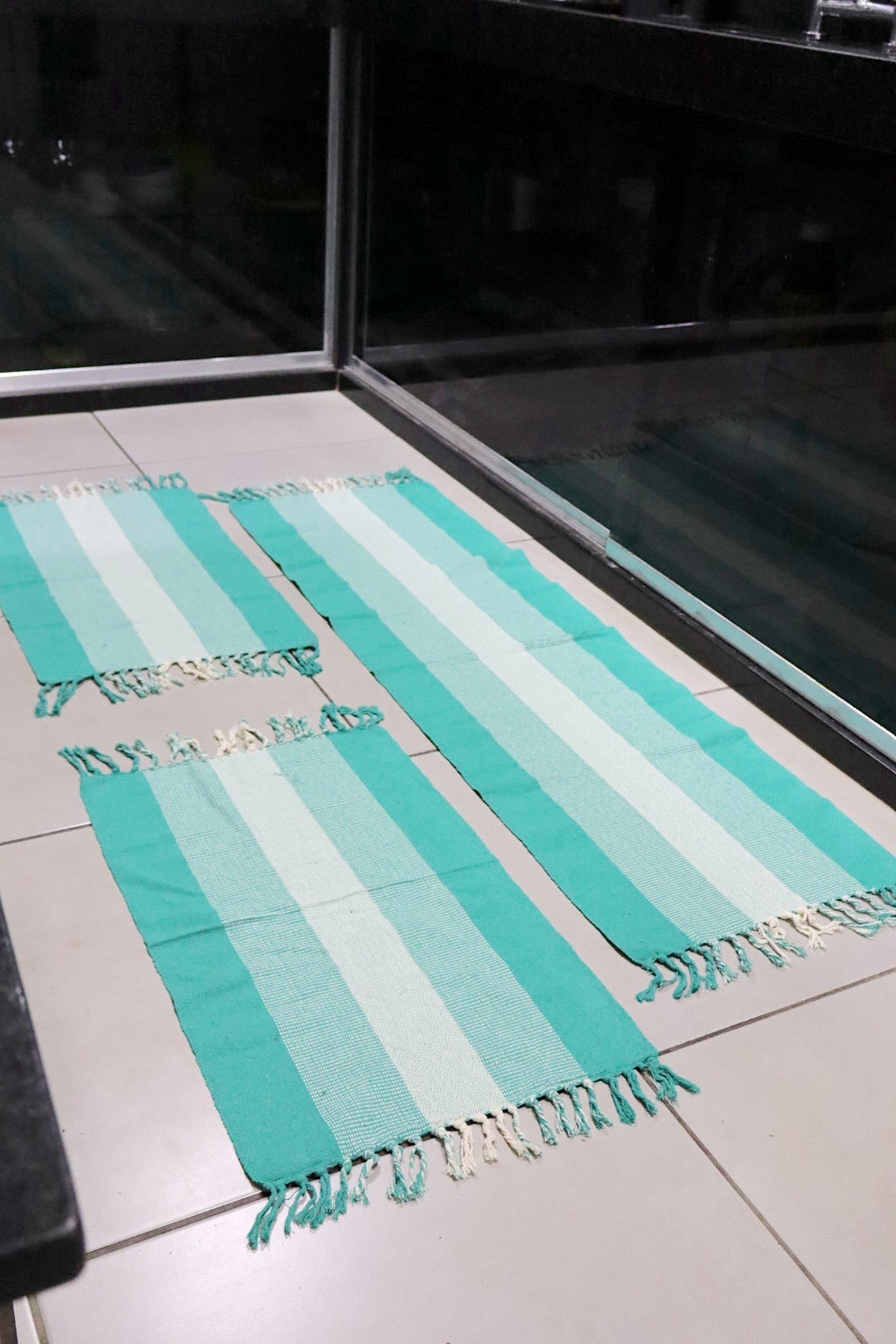 Esse Jogo de Passadeira em Algodão é tecido artesanalmente para uma adição durável e bonita na sua cozinha ou corredor. Ele contém 3 peças de qualidade, incluindo 2 tapetes. Cada item é feito com precisão e cuidado para oferecer uma ótima experiência e qualidade ao longo dos anos. O jogo é feito em um tecido mais fino.