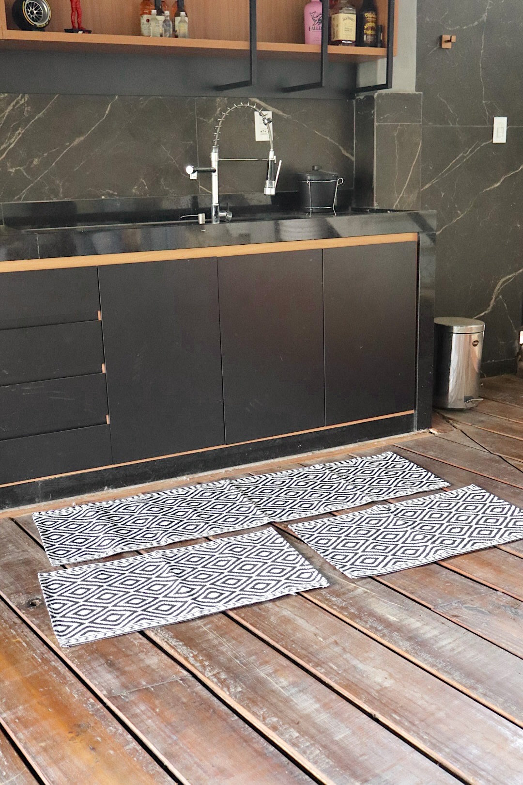 Jogo de tapete para cozinha, kit 3 peças, desenvolvido com alta tecnologia e qualidade, sempre preocupados em fabricar produtos que atendam as suas necessidades, tanto em durabilidade, quanto em permitir beleza e inovação no seu lar.