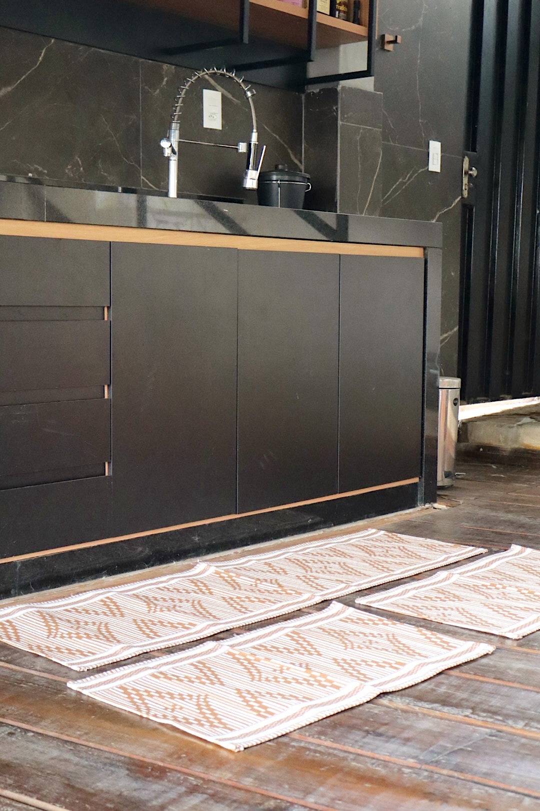 Jogo de tapete para cozinha, kit 3 peças, desenvolvido com alta tecnologia e qualidade, sempre preocupados em fabricar produtos que atendam as suas necessidades, tanto em durabilidade, quanto em permitir beleza e inovação no seu lar.
