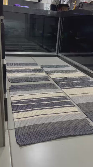 Jogo de Passadeira Linha Listrado Azul e Cru