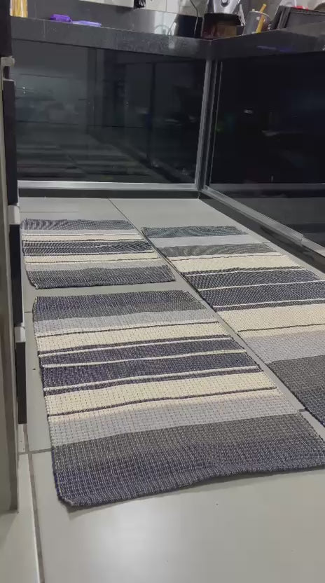 Todos os nossos tapetes são feitos de forma manual, artesanalmente, podendo ocorrer uma variação de até 10% no tamanho, para mais ou para menos.