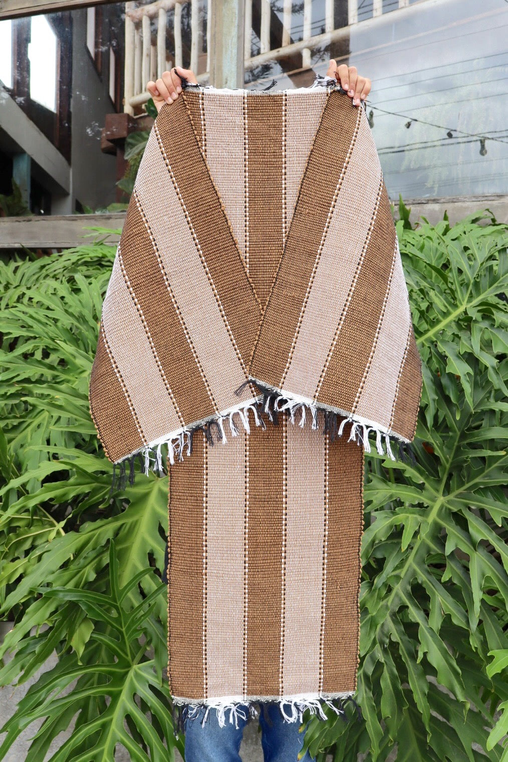 Jogo de Passadeira Malha com 3 Peças Caramelo Listrado