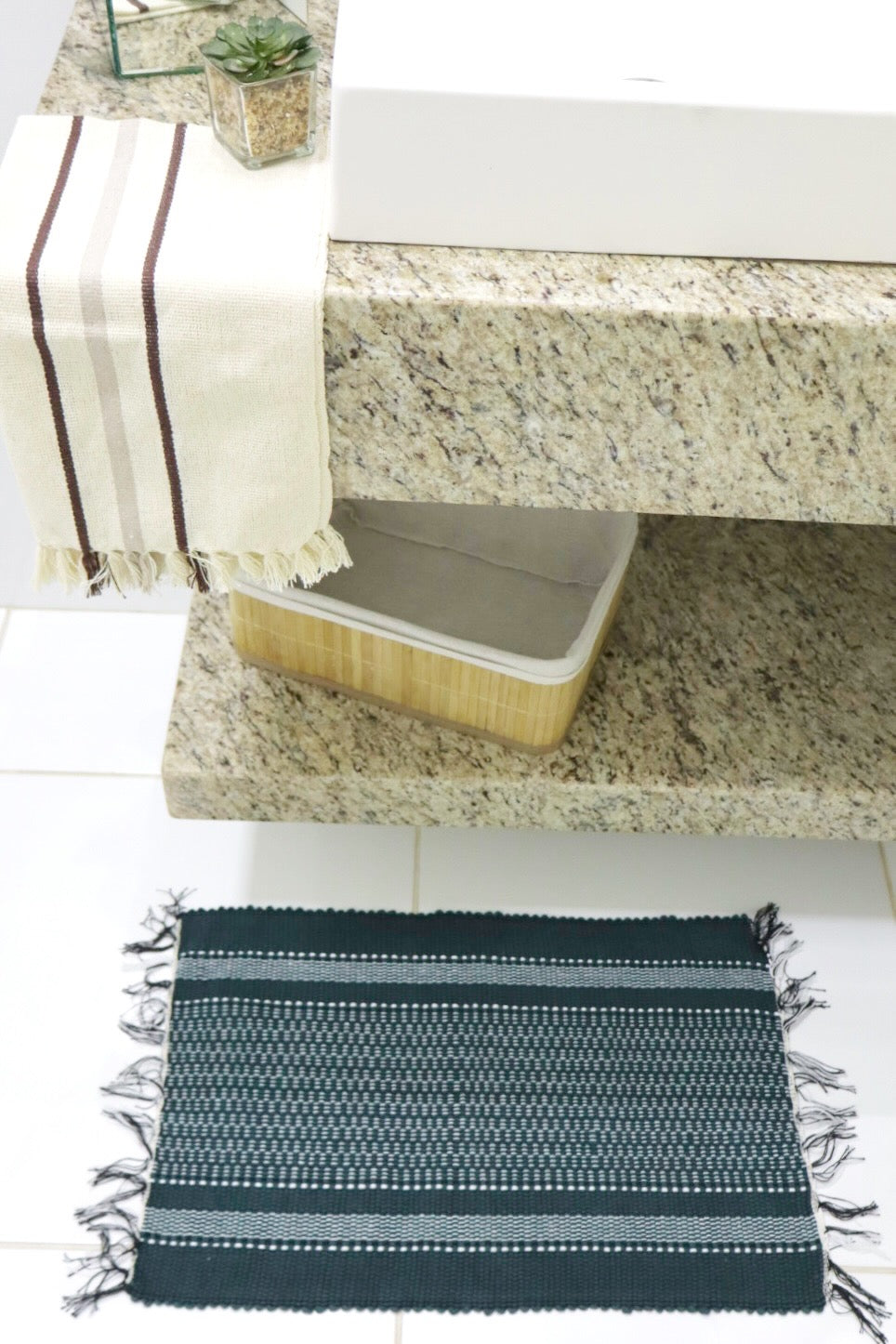 O Kit 2 Peças de Lavabo é ideal para tornar a decoração do banheiro muito mais charmosa. Feito à mão com 85% algodão no mínimo, o jogo conta com uma toalha para lavabo e um tapetinho coroa. Uma jogo único para decorar seu banheiro.