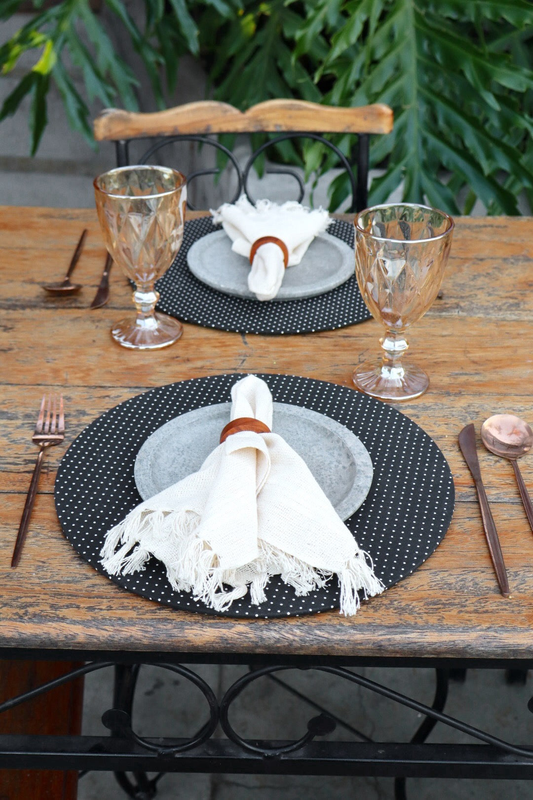 Kit 4 Sousplat Completo + Guardanapos Algodão + Argolas Rústicas Tricoline Preto