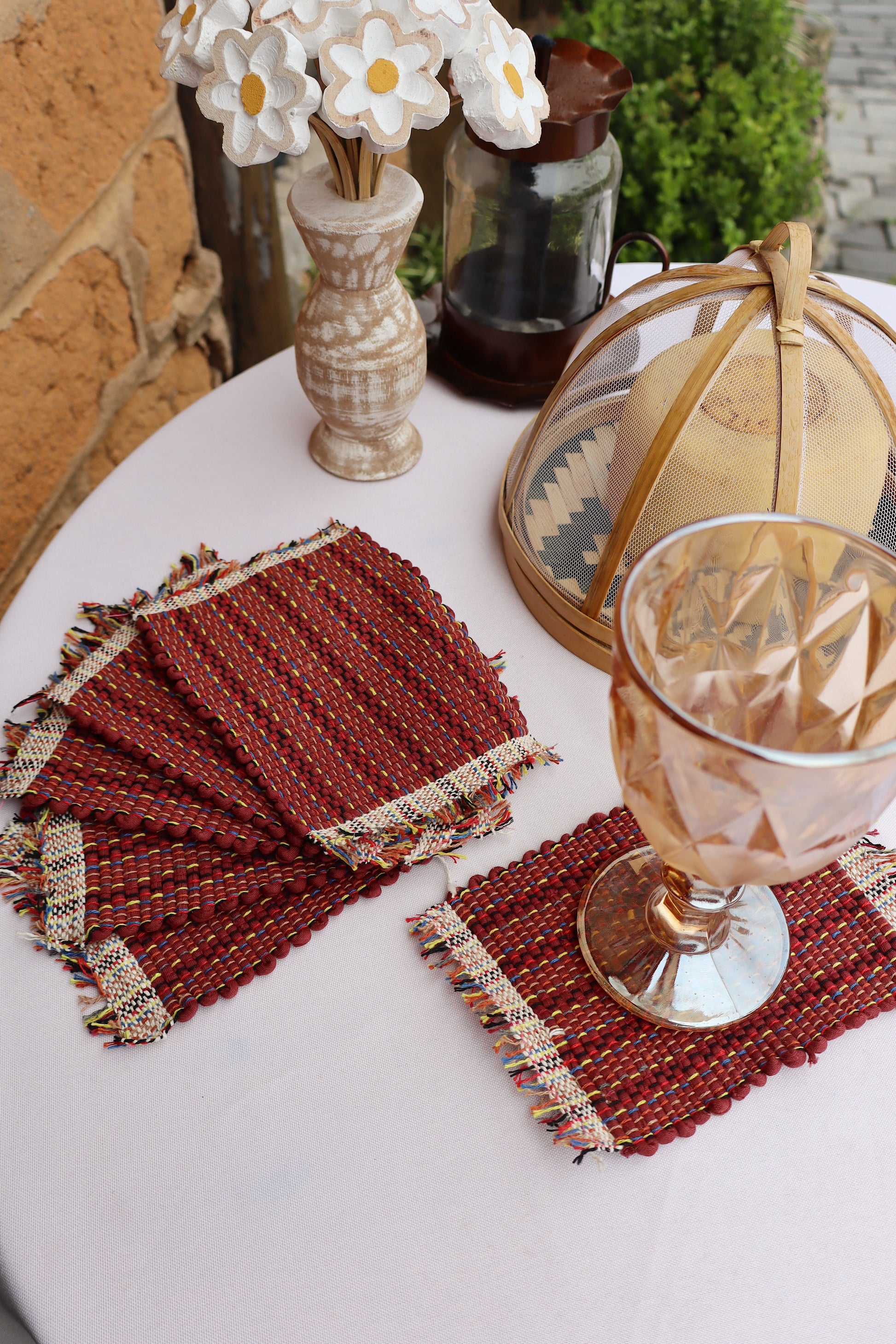 Kit 6 Porta Copos / Descanso Para Copos em Malha Terracota
