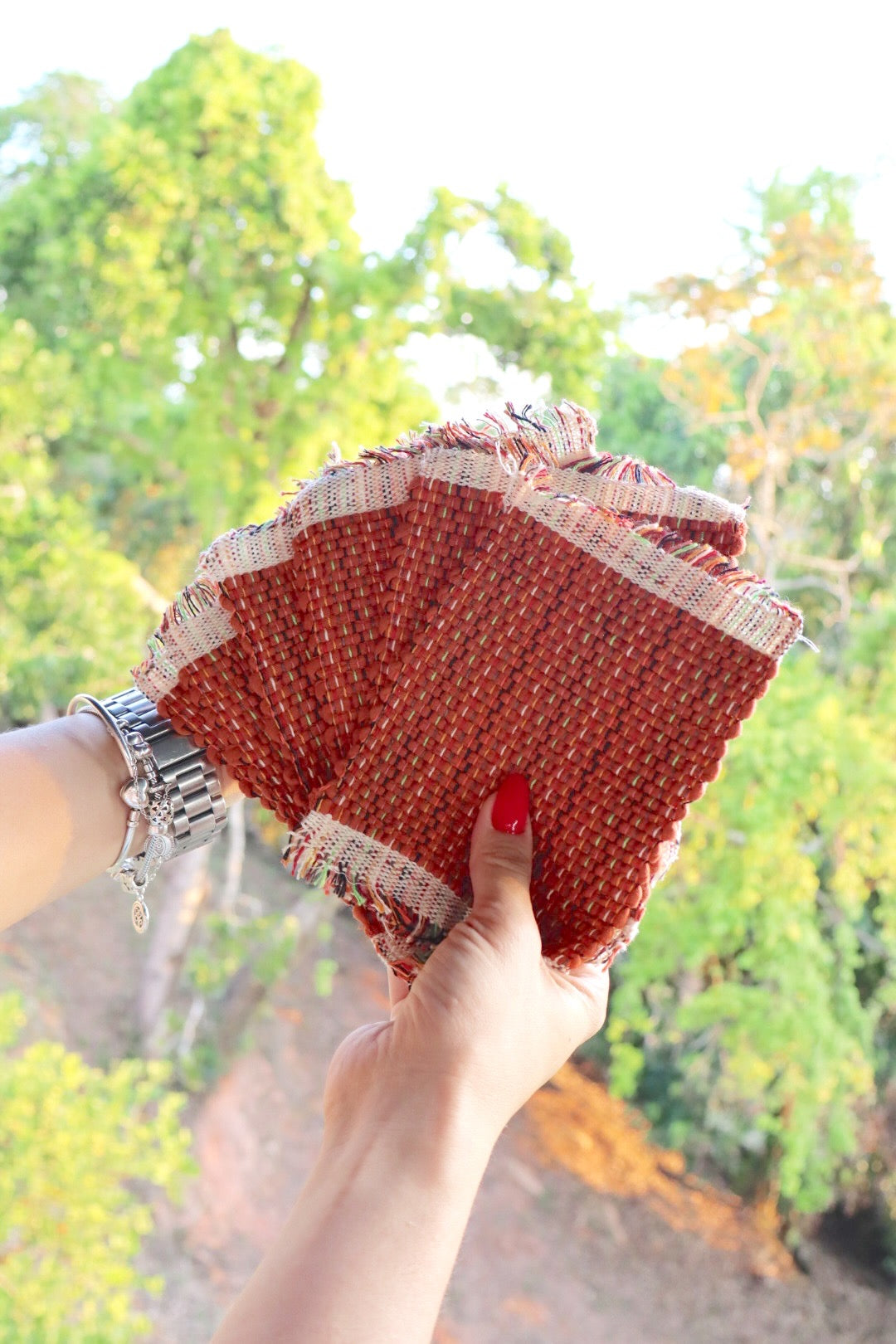 Kit 6 Porta Copos / Descanso Para Copos em Malha Terracota