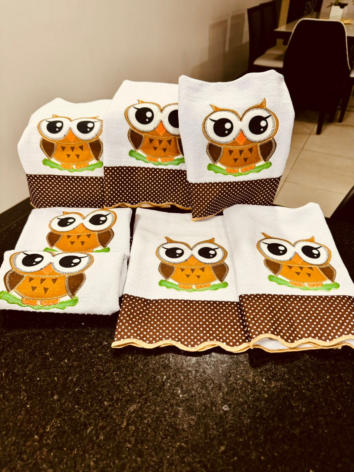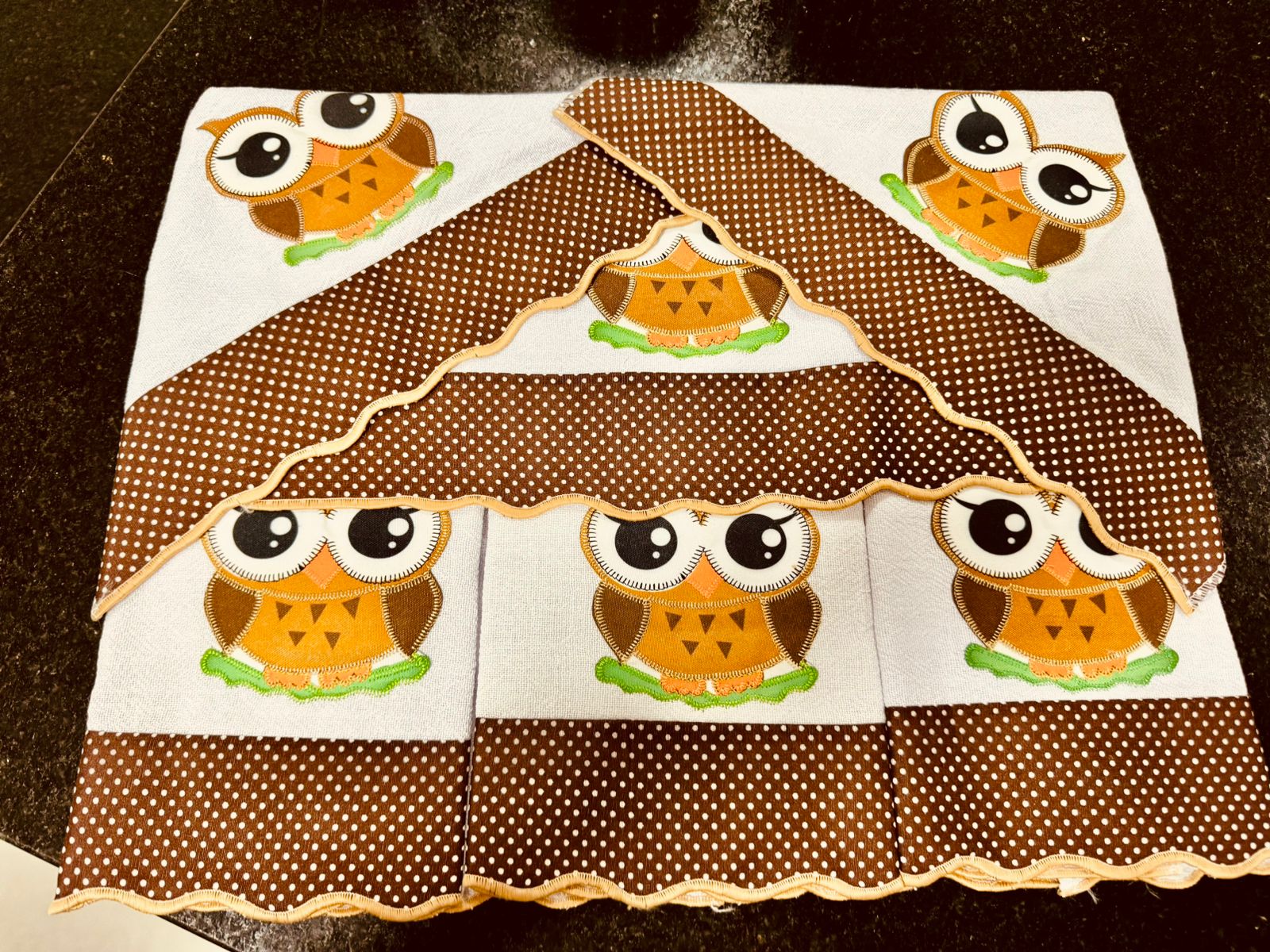 Kit 7 Panos de Prato Decorados - Semaninha Coruja Marrom