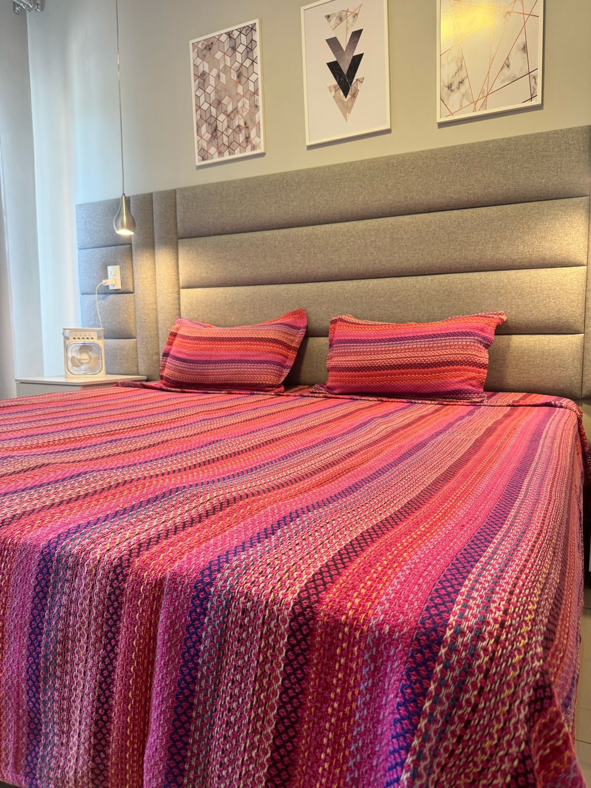 Kit Colcha Indiana + Porta Travesseiros King Rosa Pink