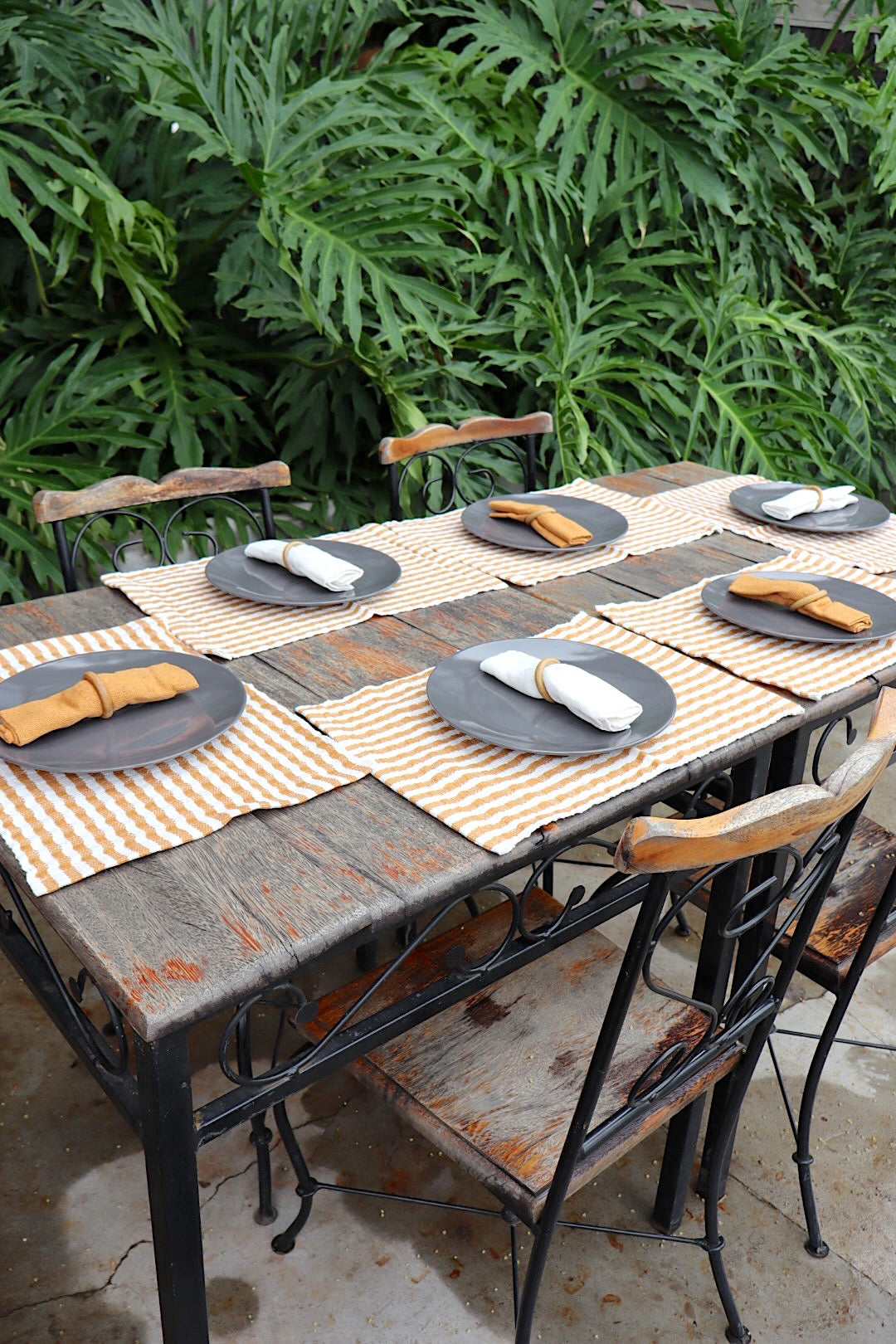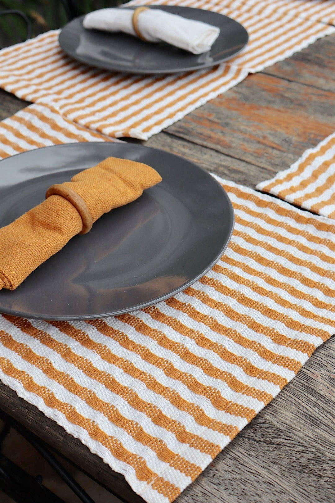 Kit De Jogo Americano, Guardanapo e Argola 6 lugares Mostarda