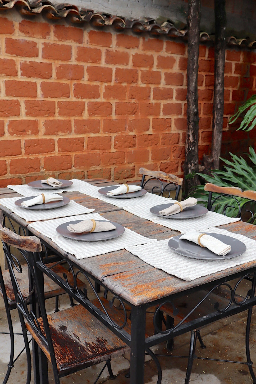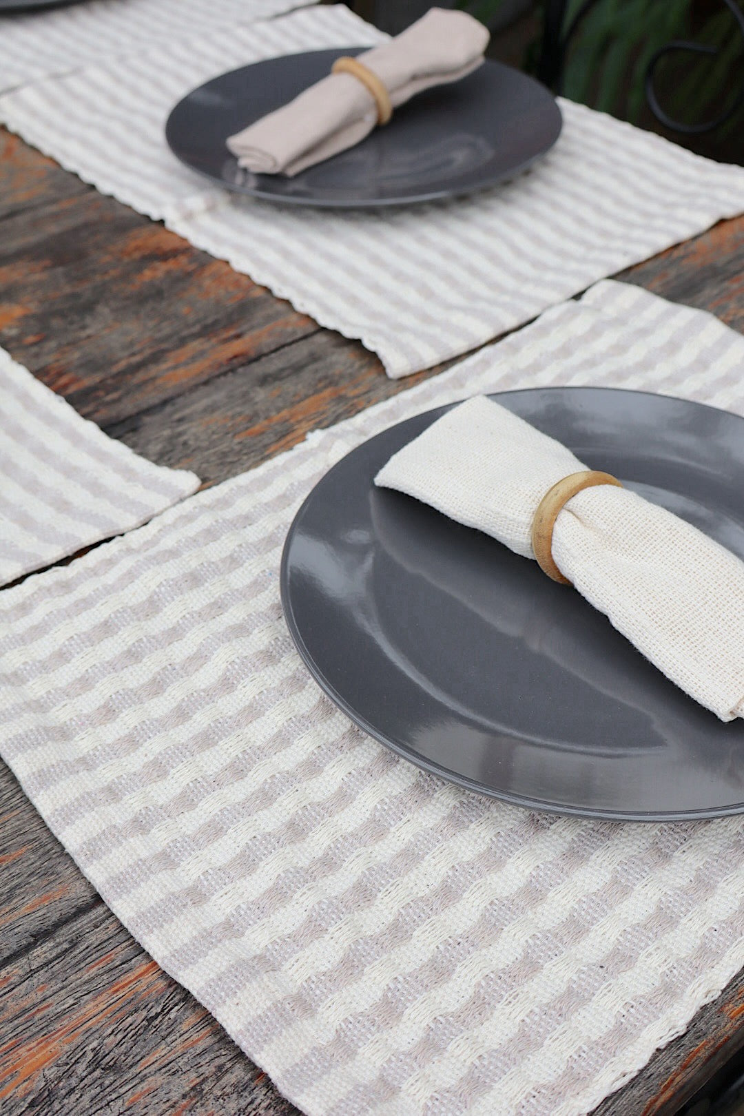 Kit De Jogo Americano, Guardanapo e Argola 6 lugares Bege