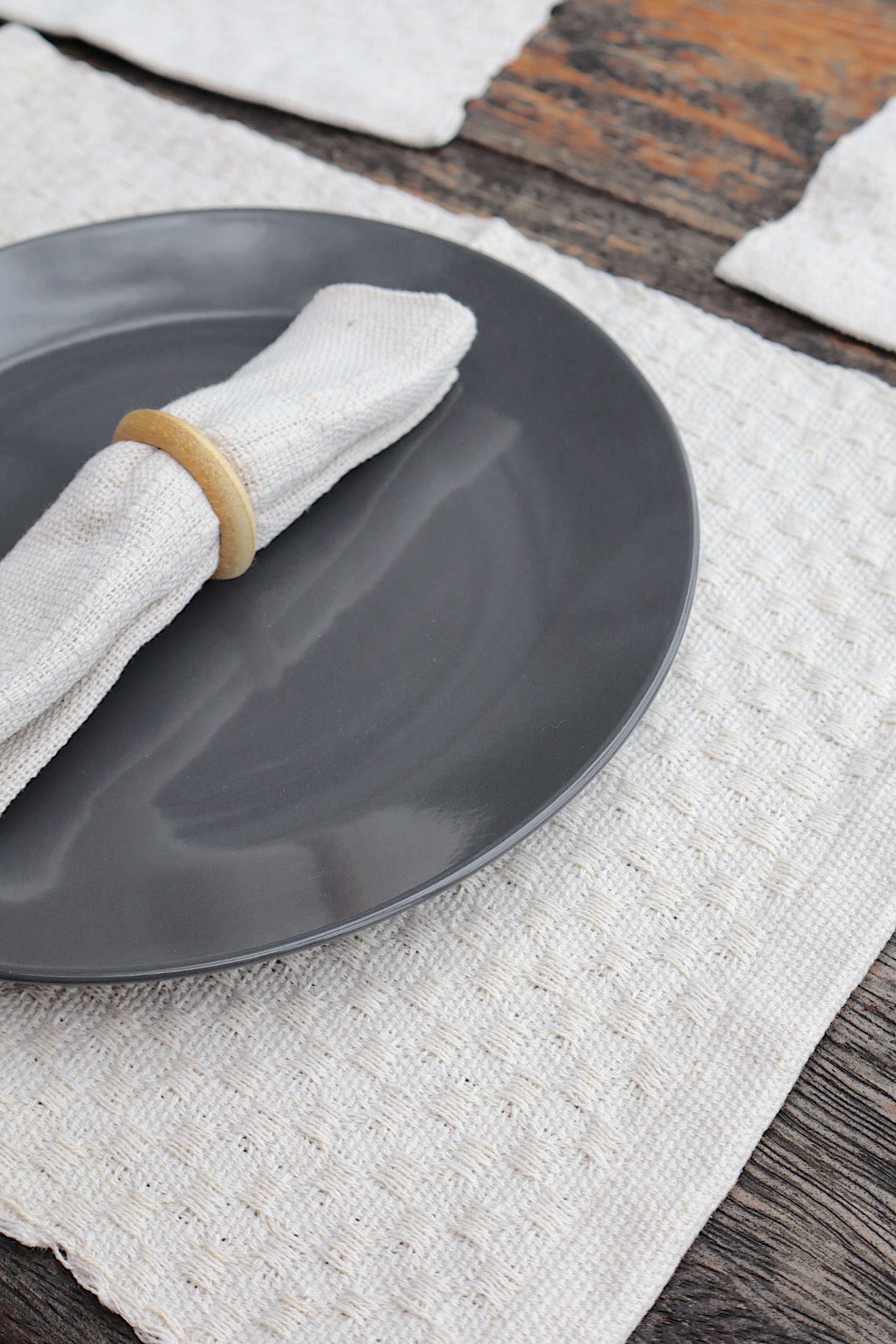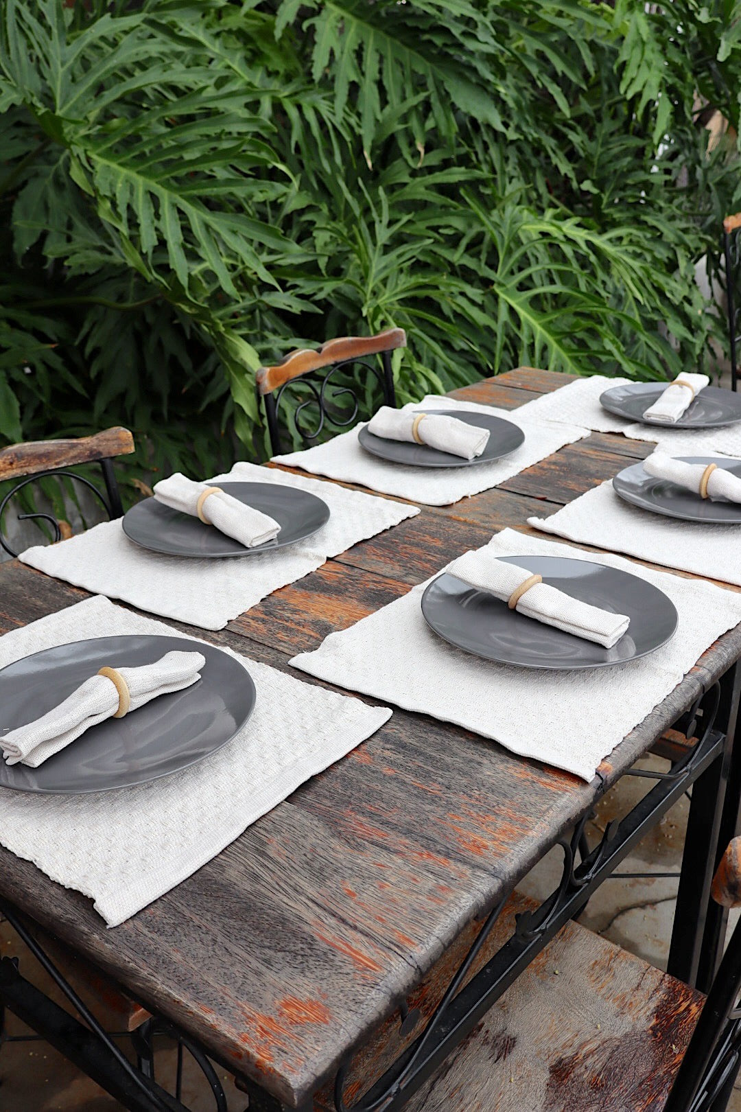 Kit De Jogo Americano, Guardanapo e Argola 6 lugares Cru