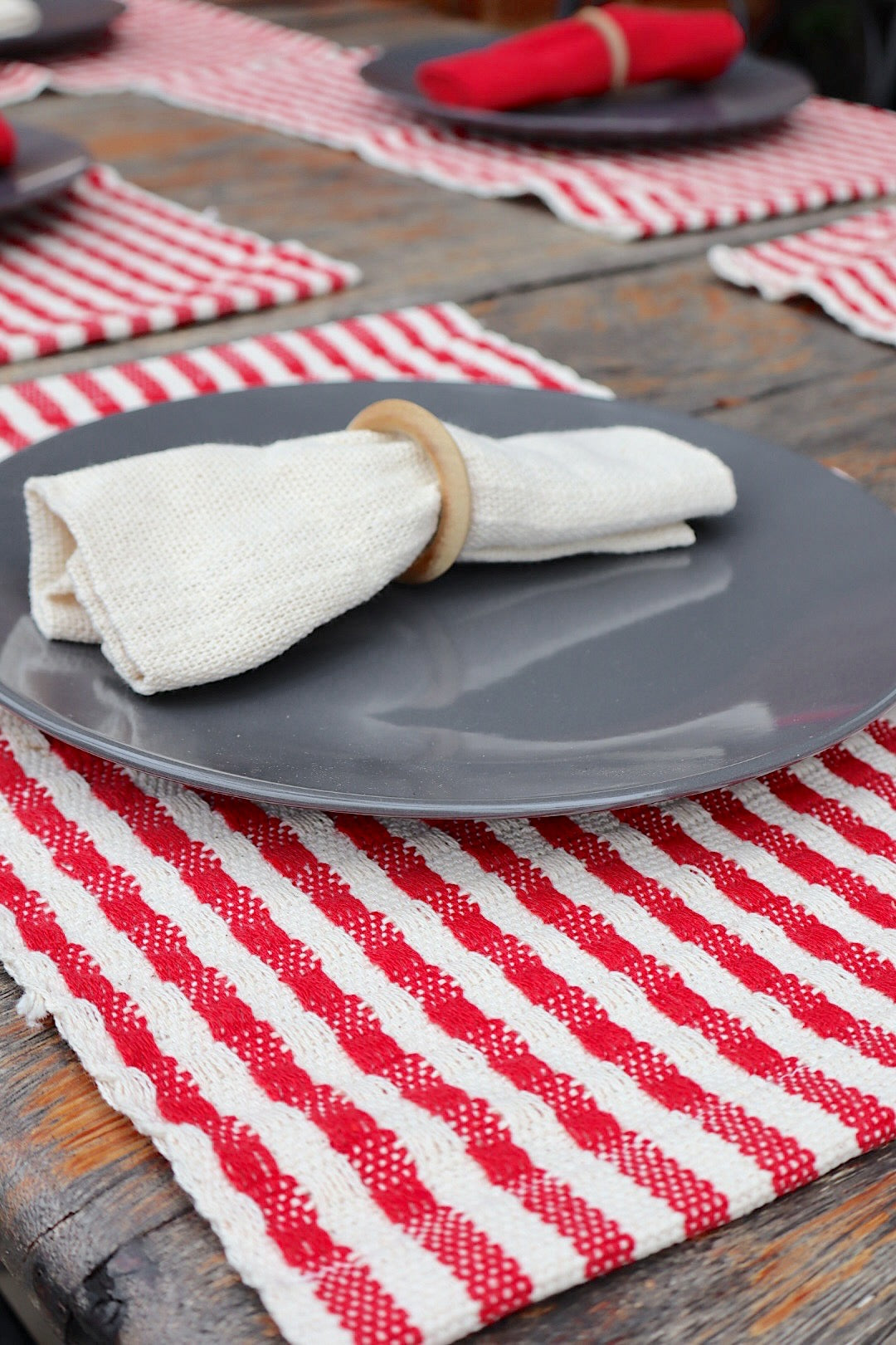 Kit De Jogo Americano, Guardanapo e Argola 6 lugares Vermelho