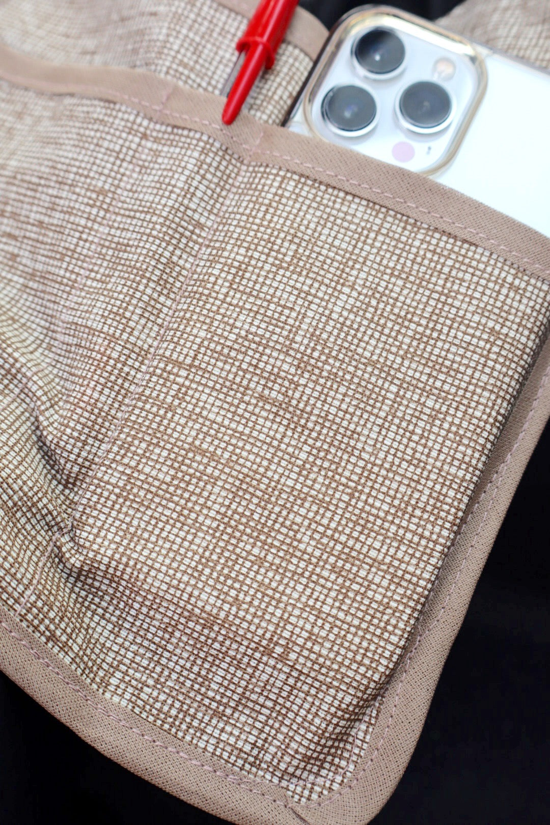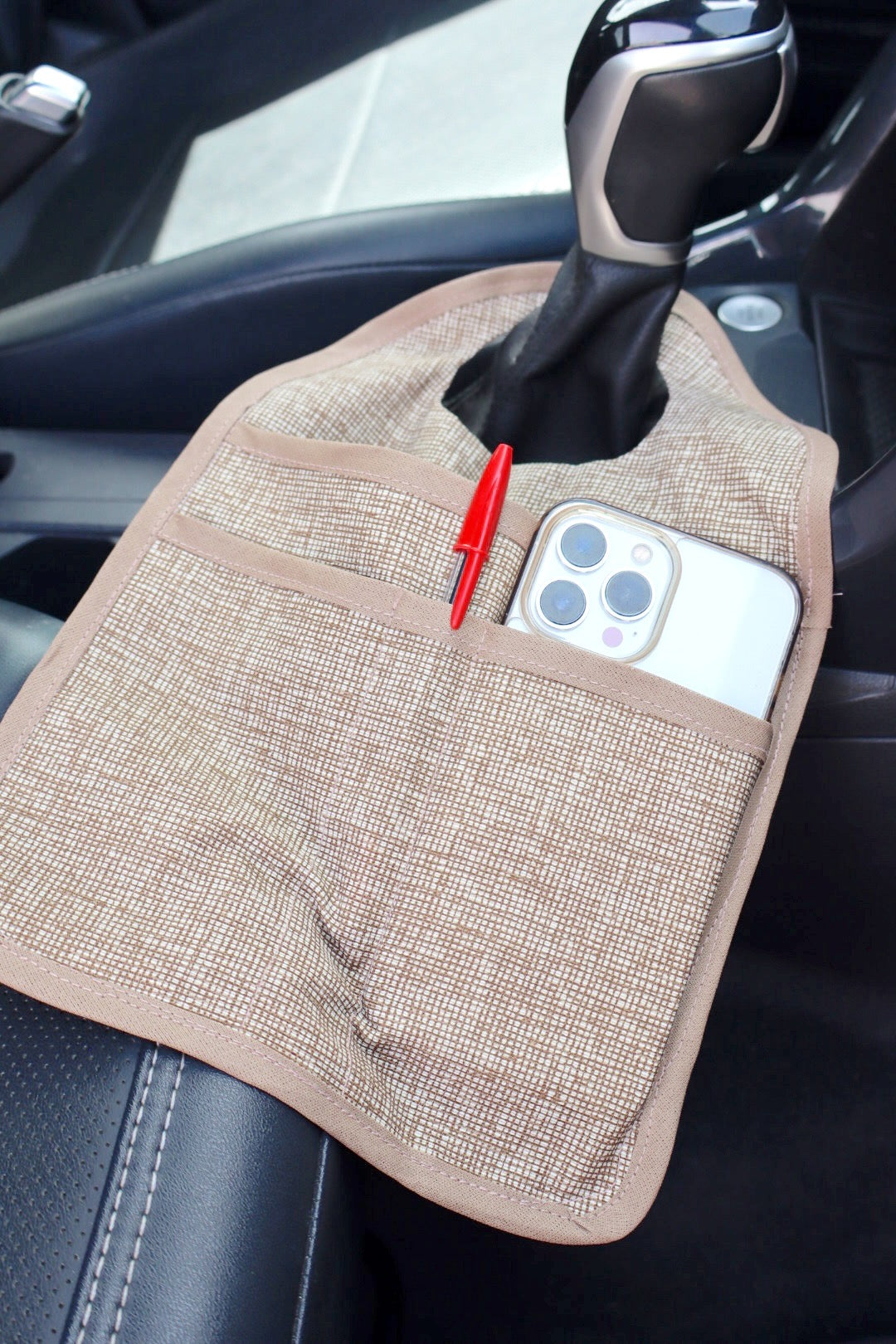 Lixeira para Carro de Tecido com Bolsos Quadriculado Marrom