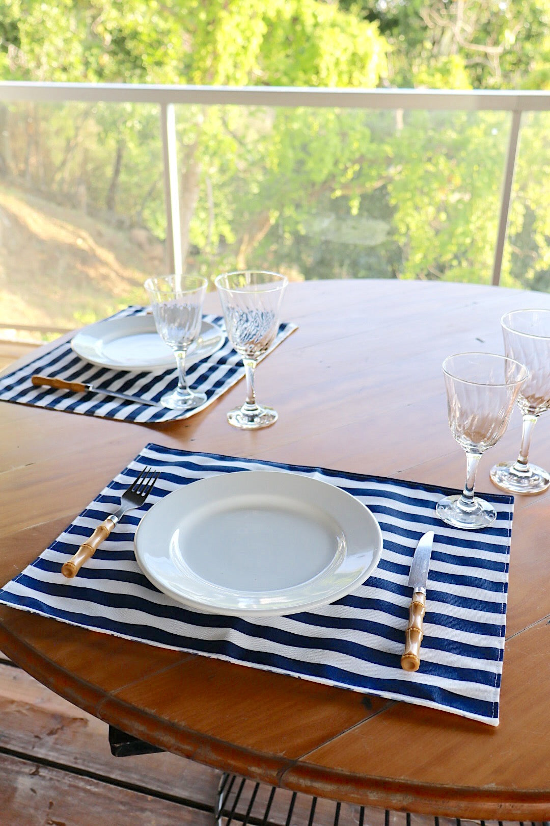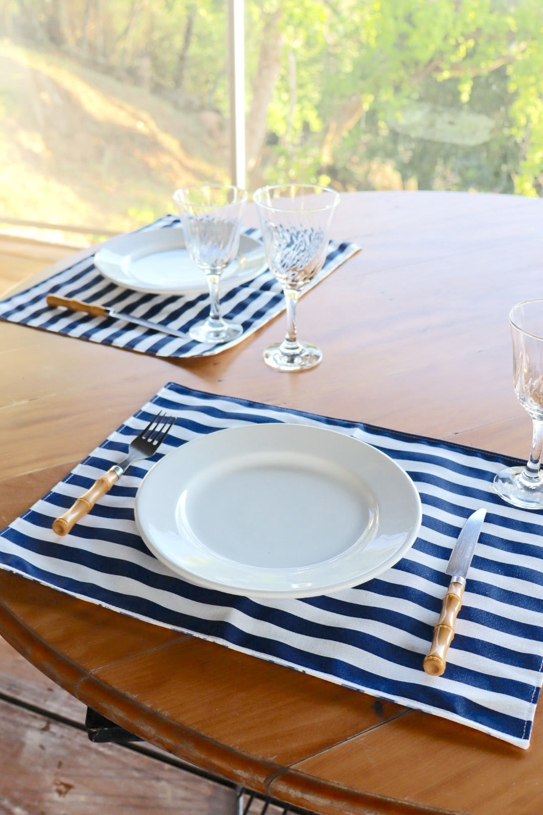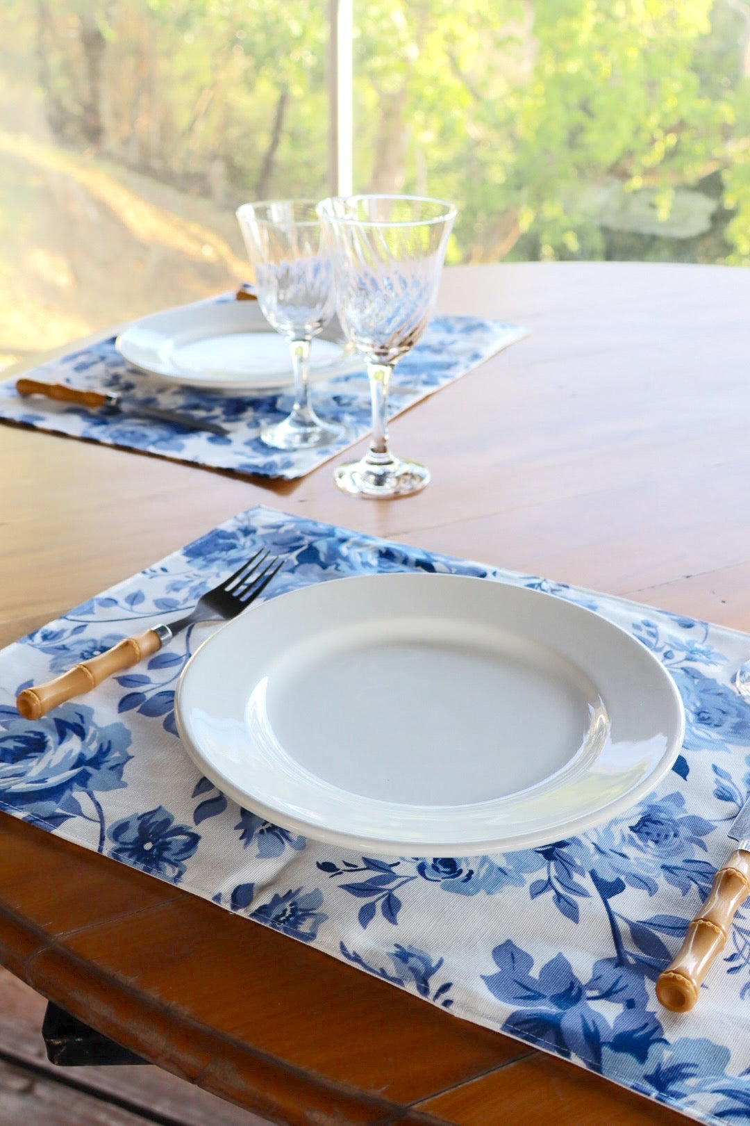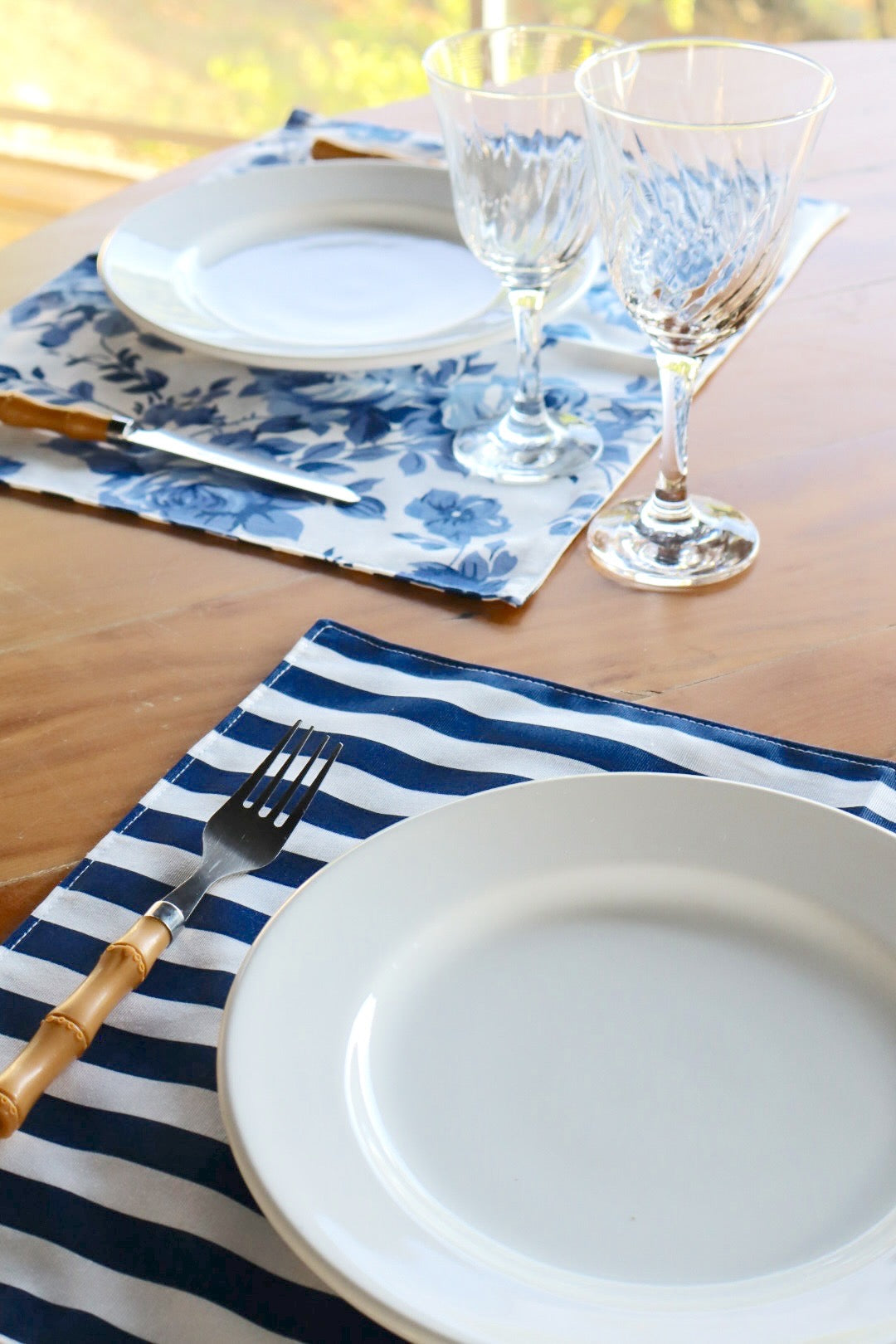 Lugar Americano Dupla Face Impermeável Floral Azul/ Listrado Azul