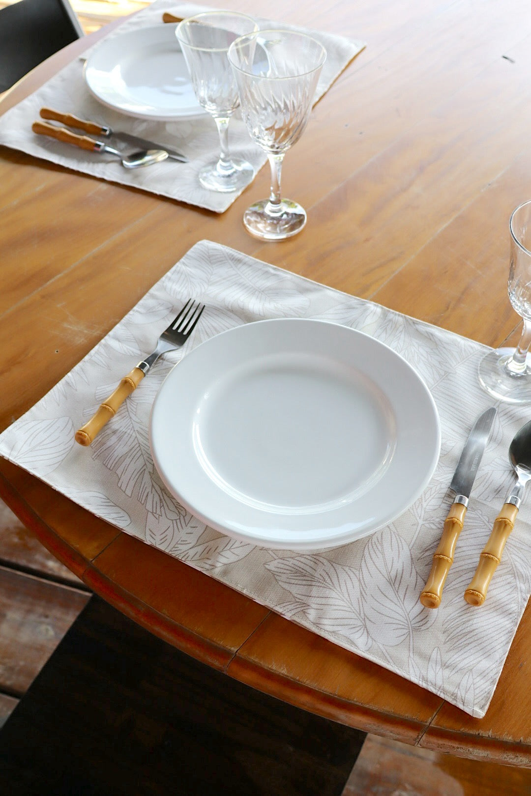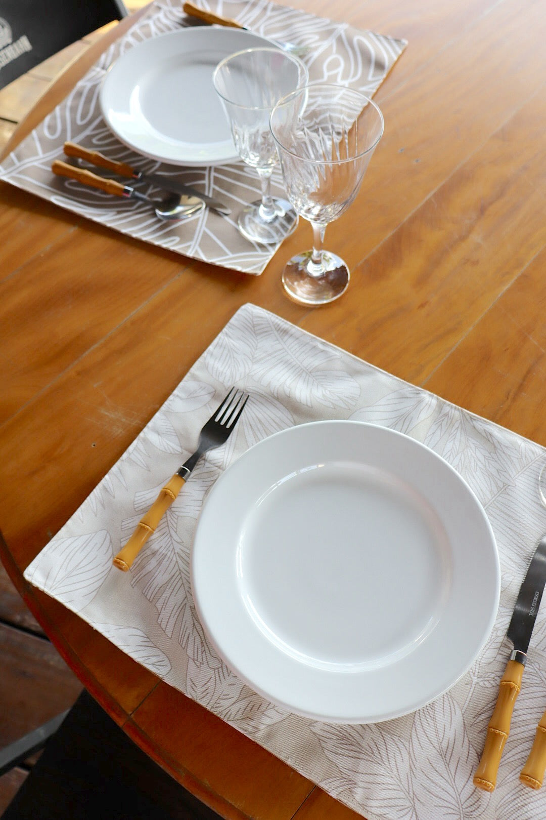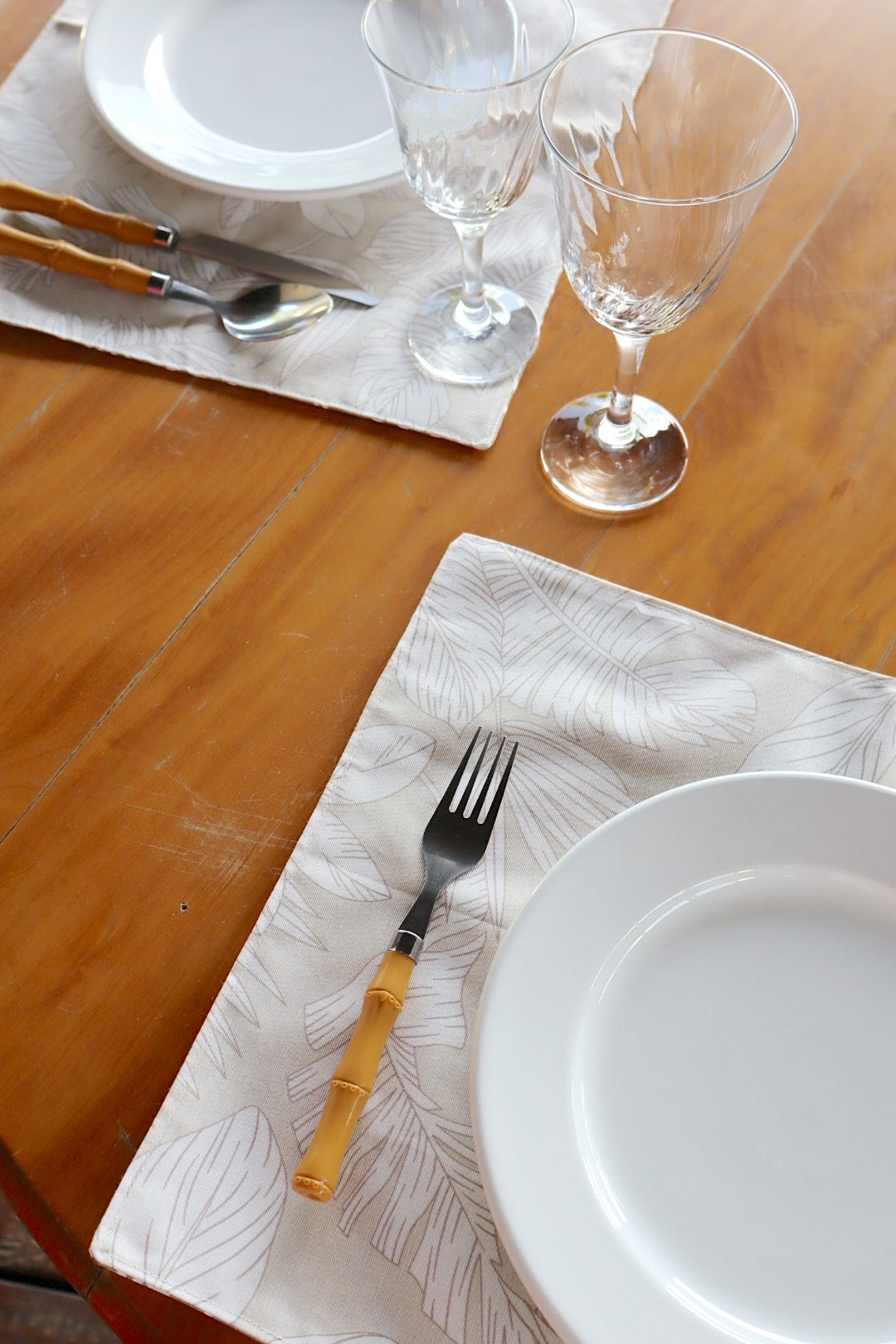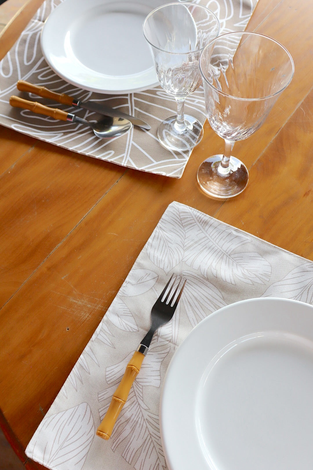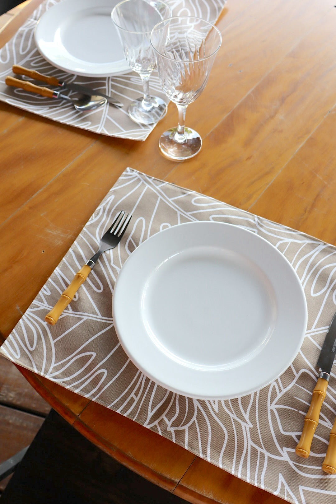 Lugar Americano Dupla Face Impermeável Folhas Bege