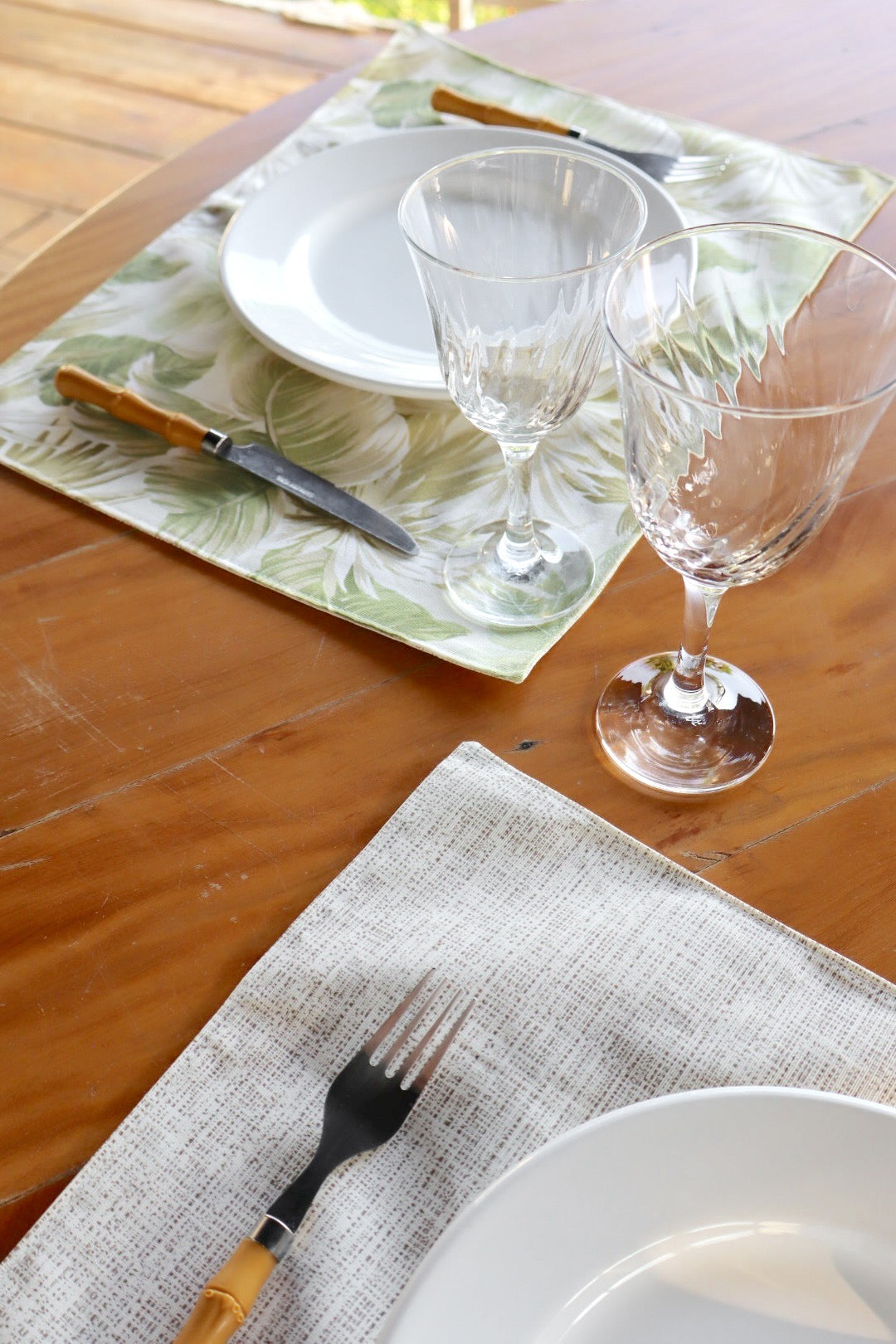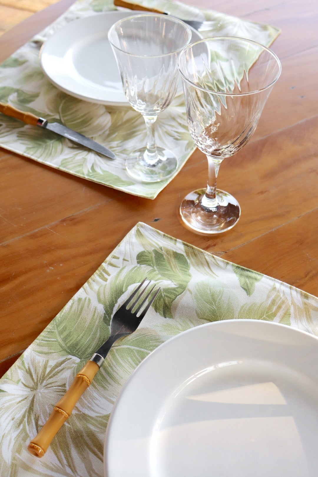 Lugar Americano Dupla Face Impermeável Folhas Verde/ Mesclado Cru