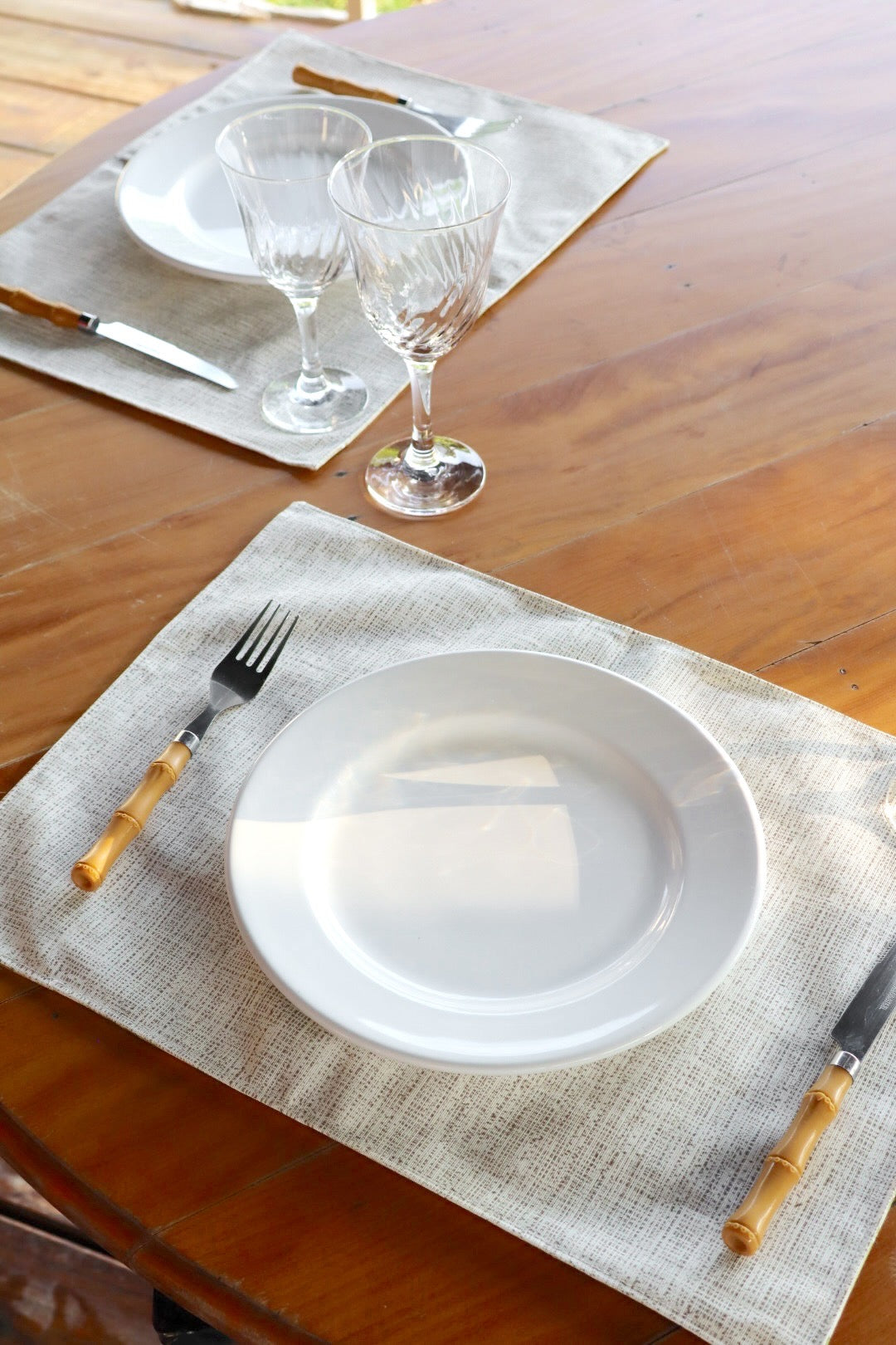 Os jogos americanos são dupla face, sendo em um lado de cada estampa , podendo montar composição com a mesma estampa em Sousplat e tendo várias opções para sua mesa o que proporciona um fino acabamento e sofisticação à mesa.