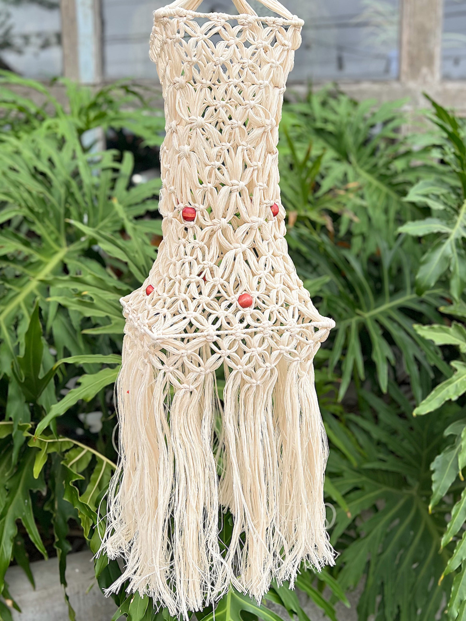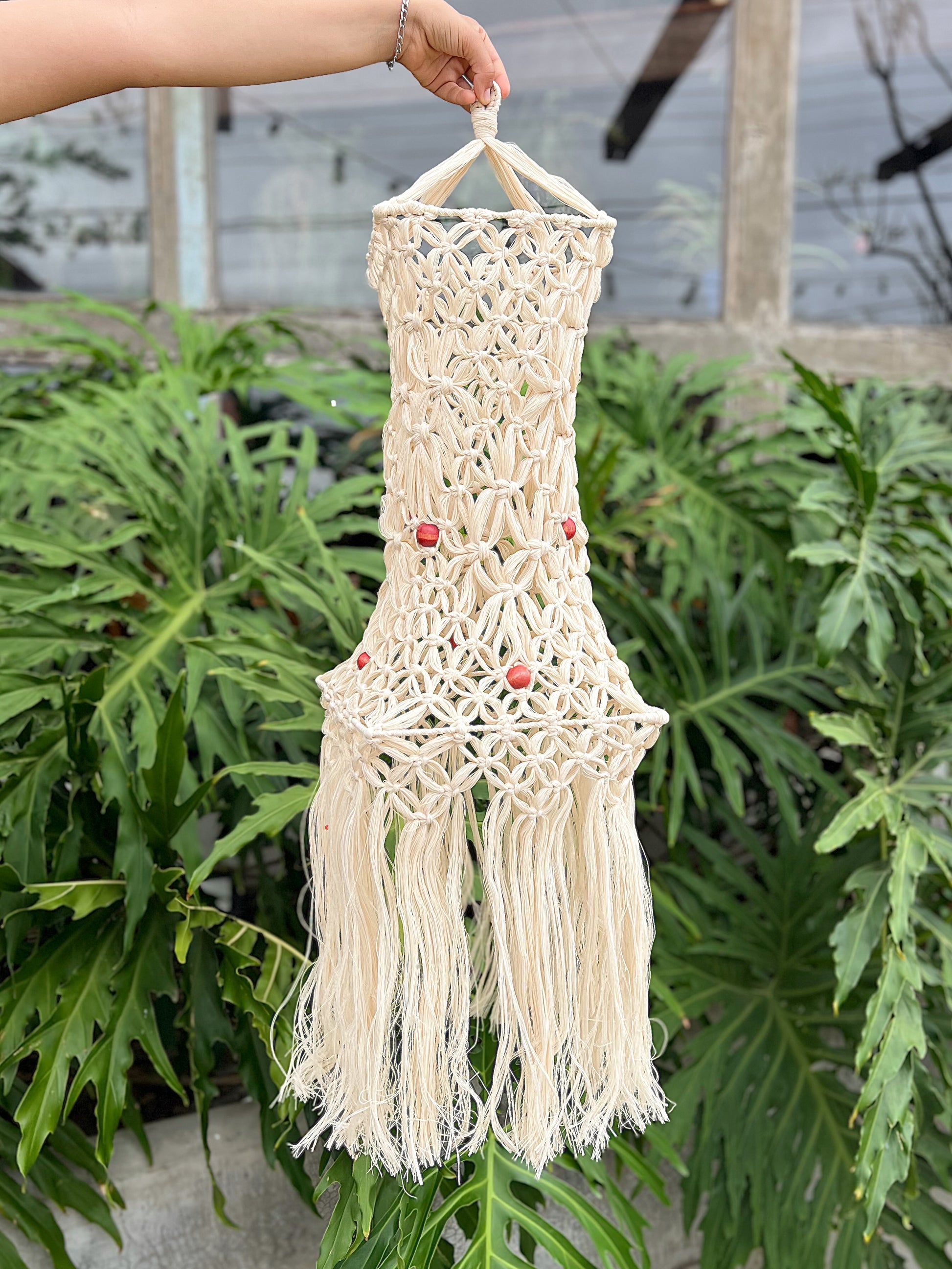 A luminária em macramê é uma peça artesanal que alia elegância e textura natural, ideal para ambientes que buscam aconchego e sofisticação. Produzida cuidadosamente com técnicas manuais, oferece uma iluminação suave e decorativa, destacando-se como um lustre exclusivo que valoriza qualquer espaço com seu design diferenciado. Essa luminária traz um toque rústico-chique, perfeito para complementar estilos que valorizam o artesanal e sustentável.