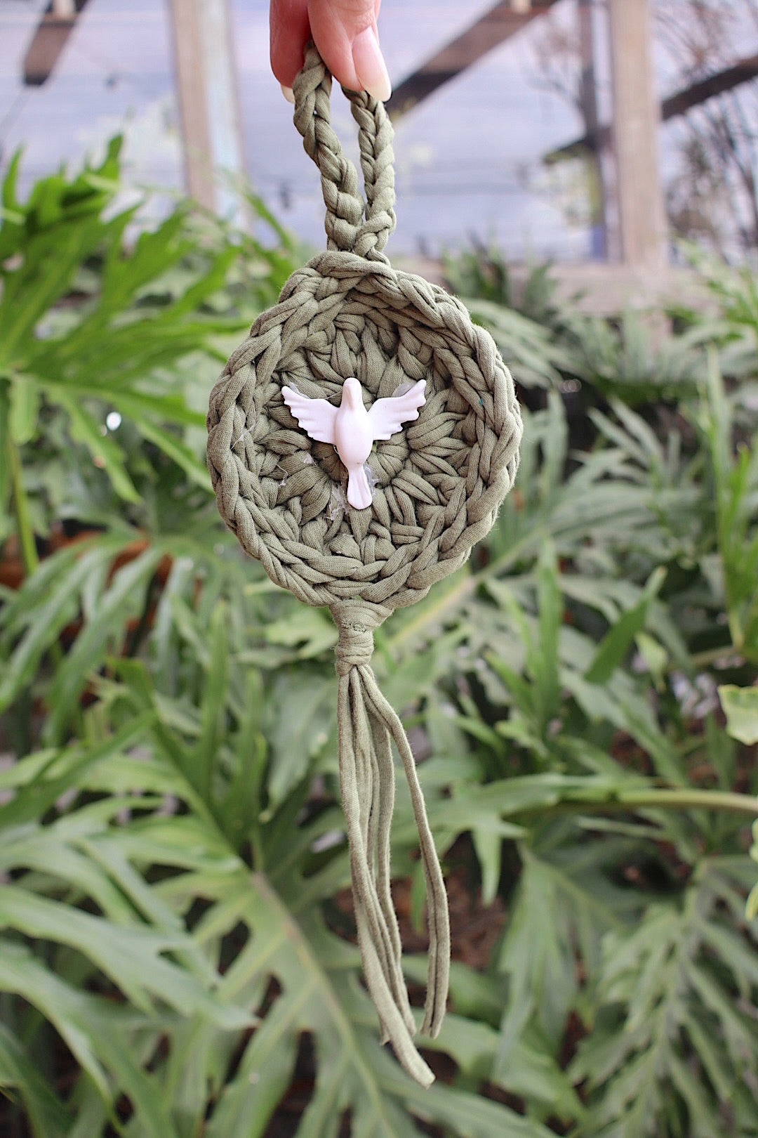 Mandala em Malha com Divino Espírito Santo Verde Musgo