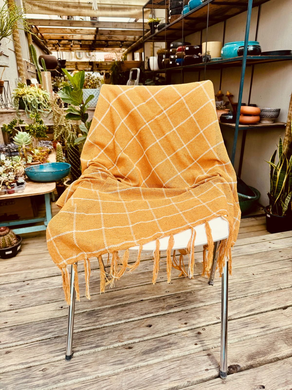 Manta / Mantinha para Sofá Algodão Grid Mostarda 1,20mx1,20m