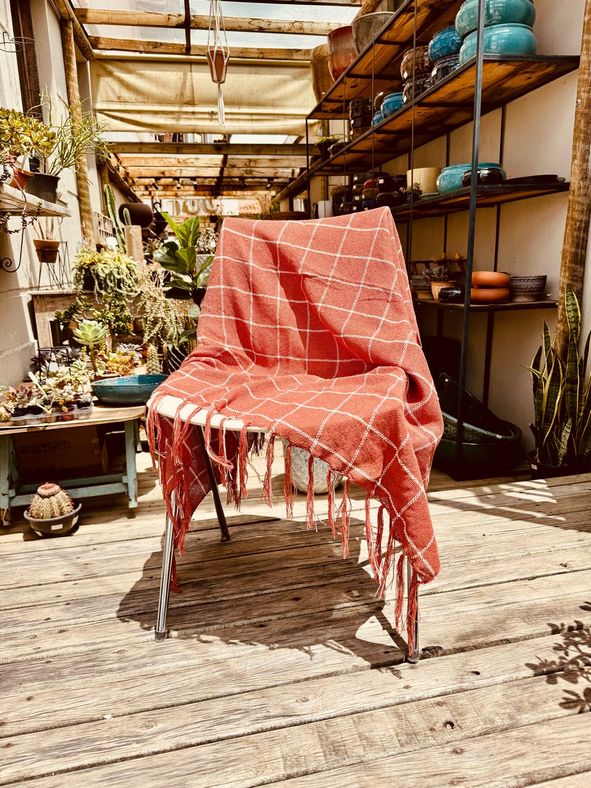 Manta / Mantinha para Sofá Algodão Grid Terracota 1,20mx1,20m