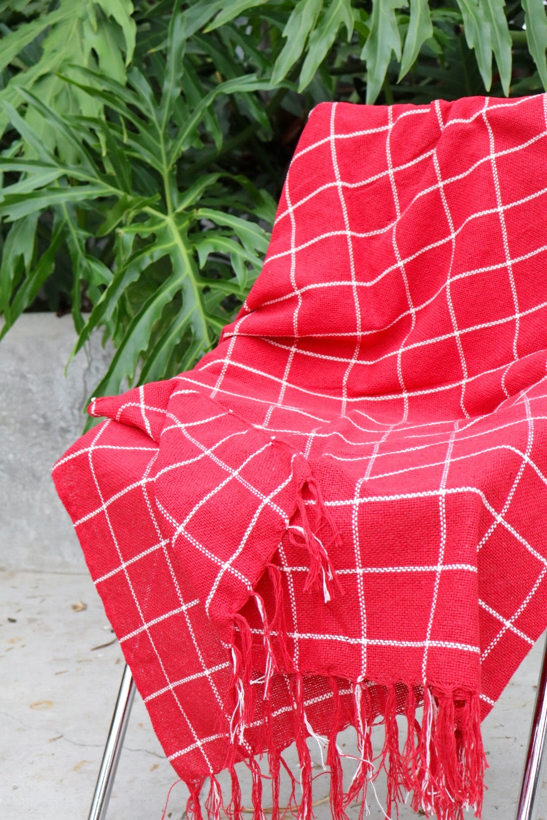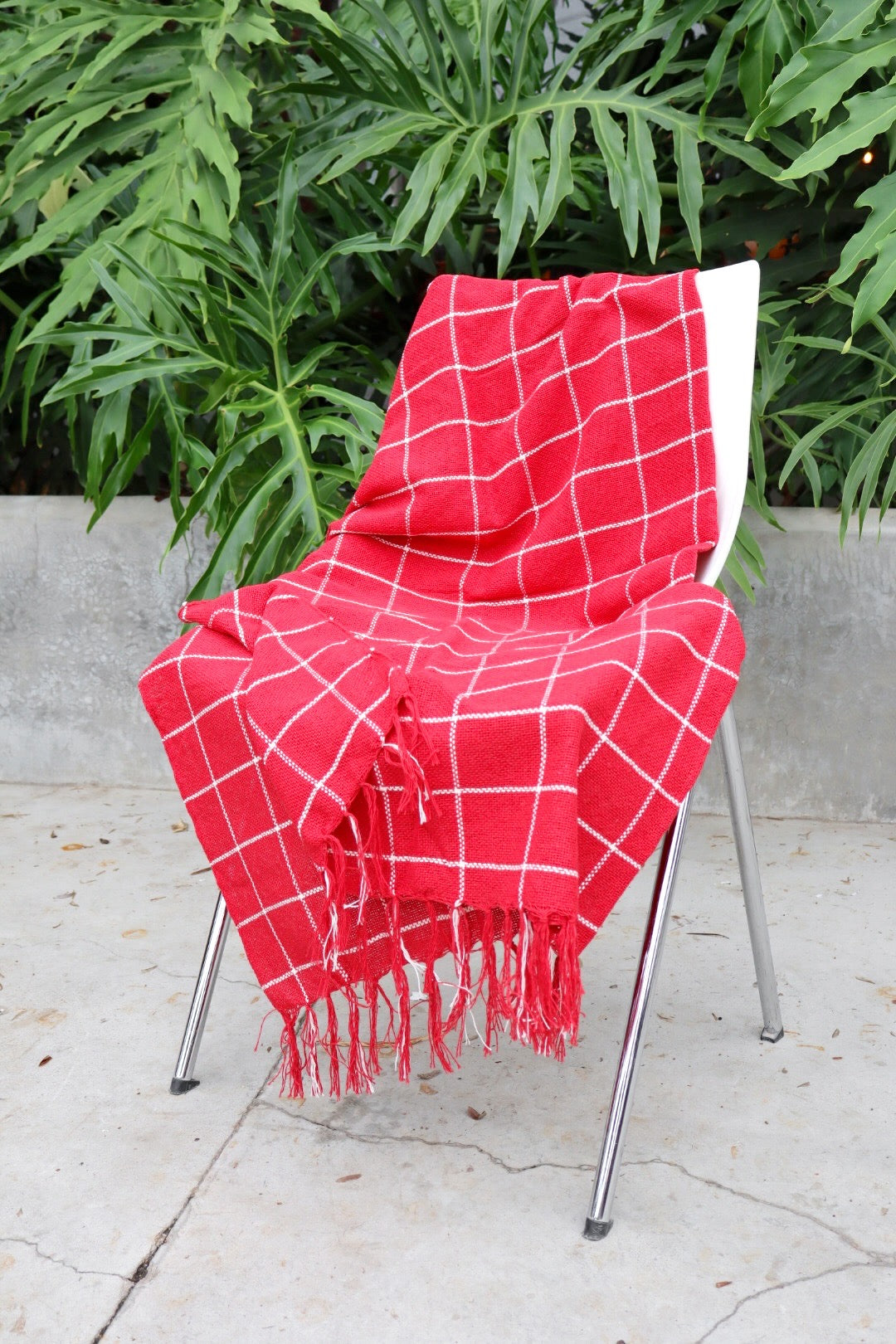 Manta / Mantinha para Sofá Algodão Grid Vermelha 1,20mx1,20m