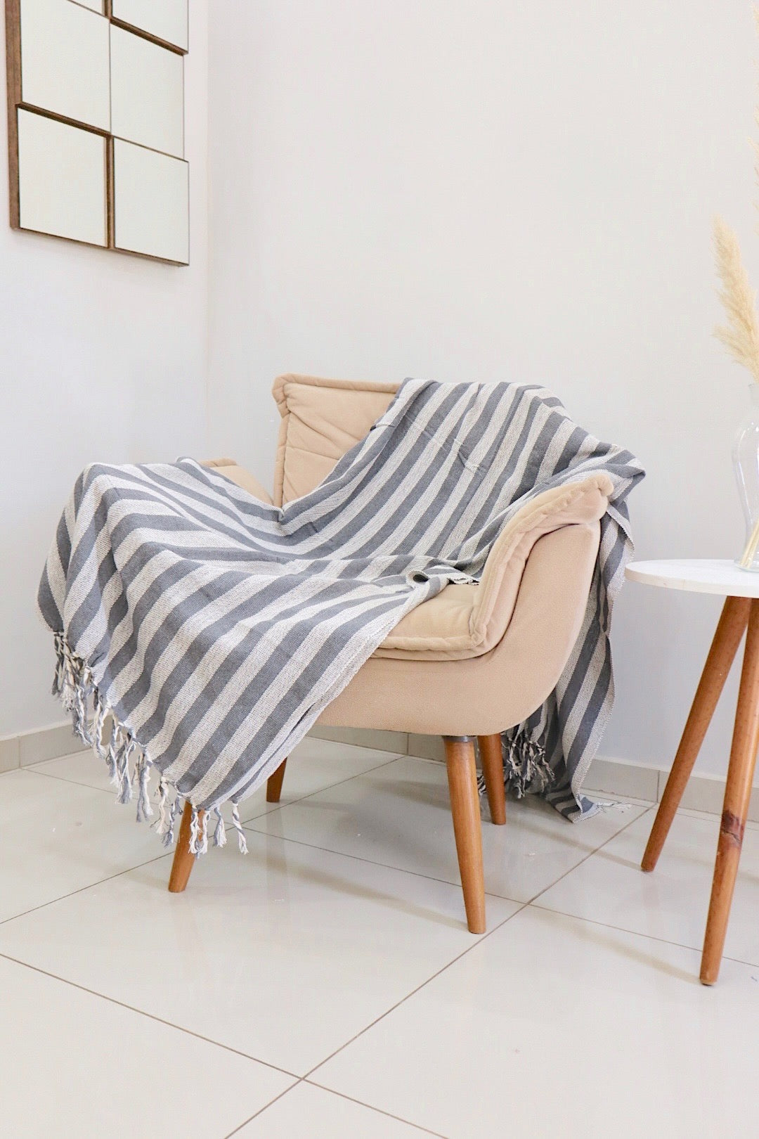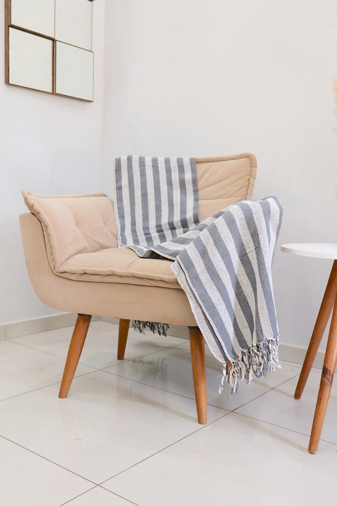 Manta para Sofá Básica Gigante Listrada Cinza 1,40x2,20m