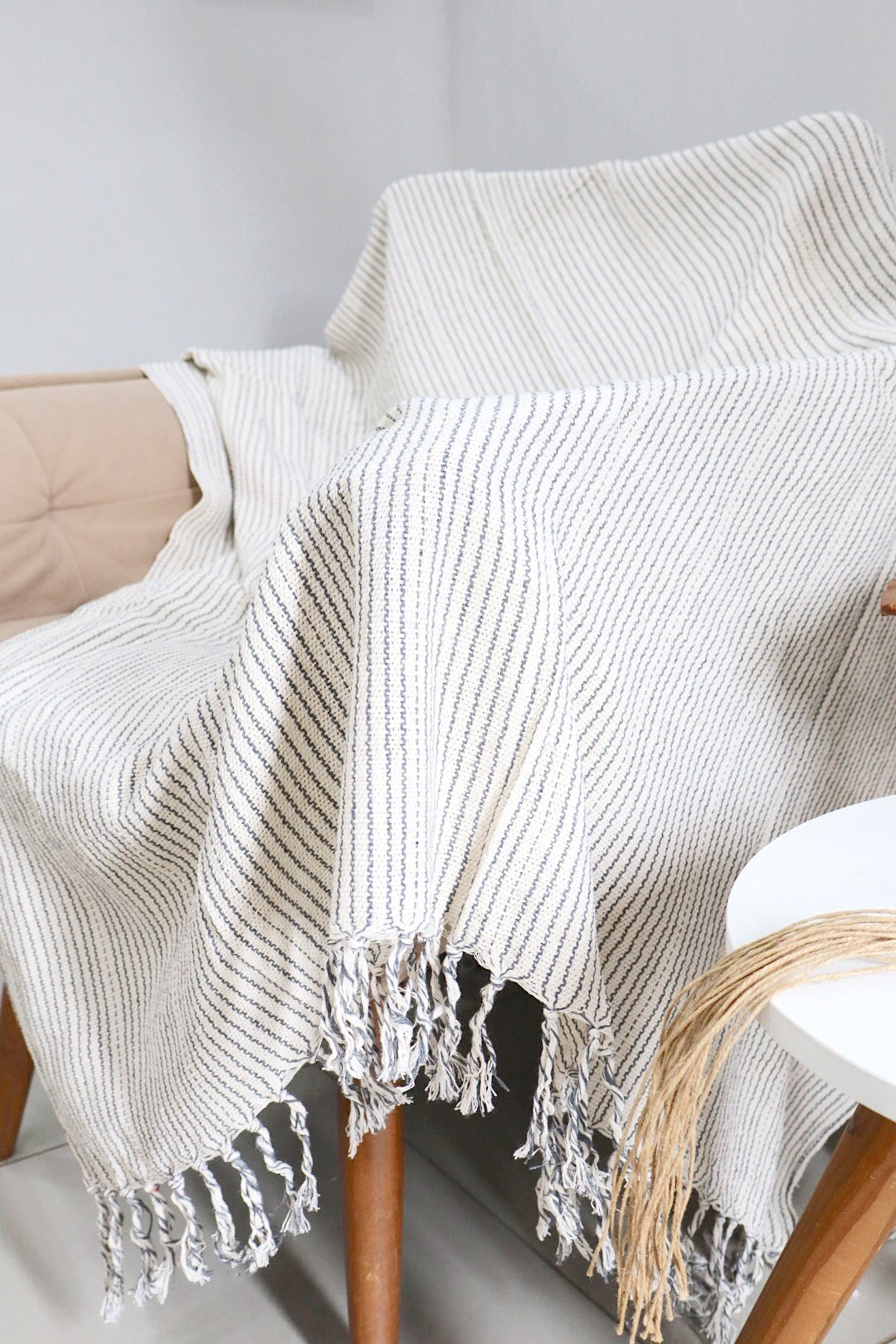 Manta para Sofá Básica Gigante Listradinha Cinza 1,40x2,20m
