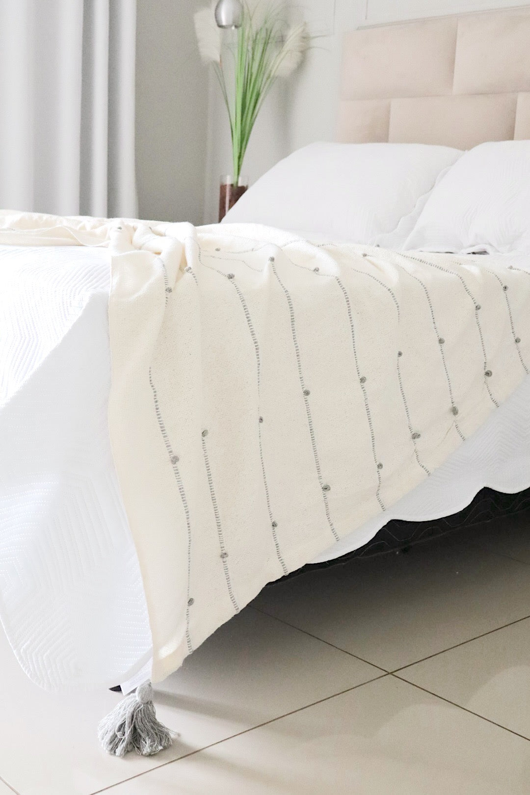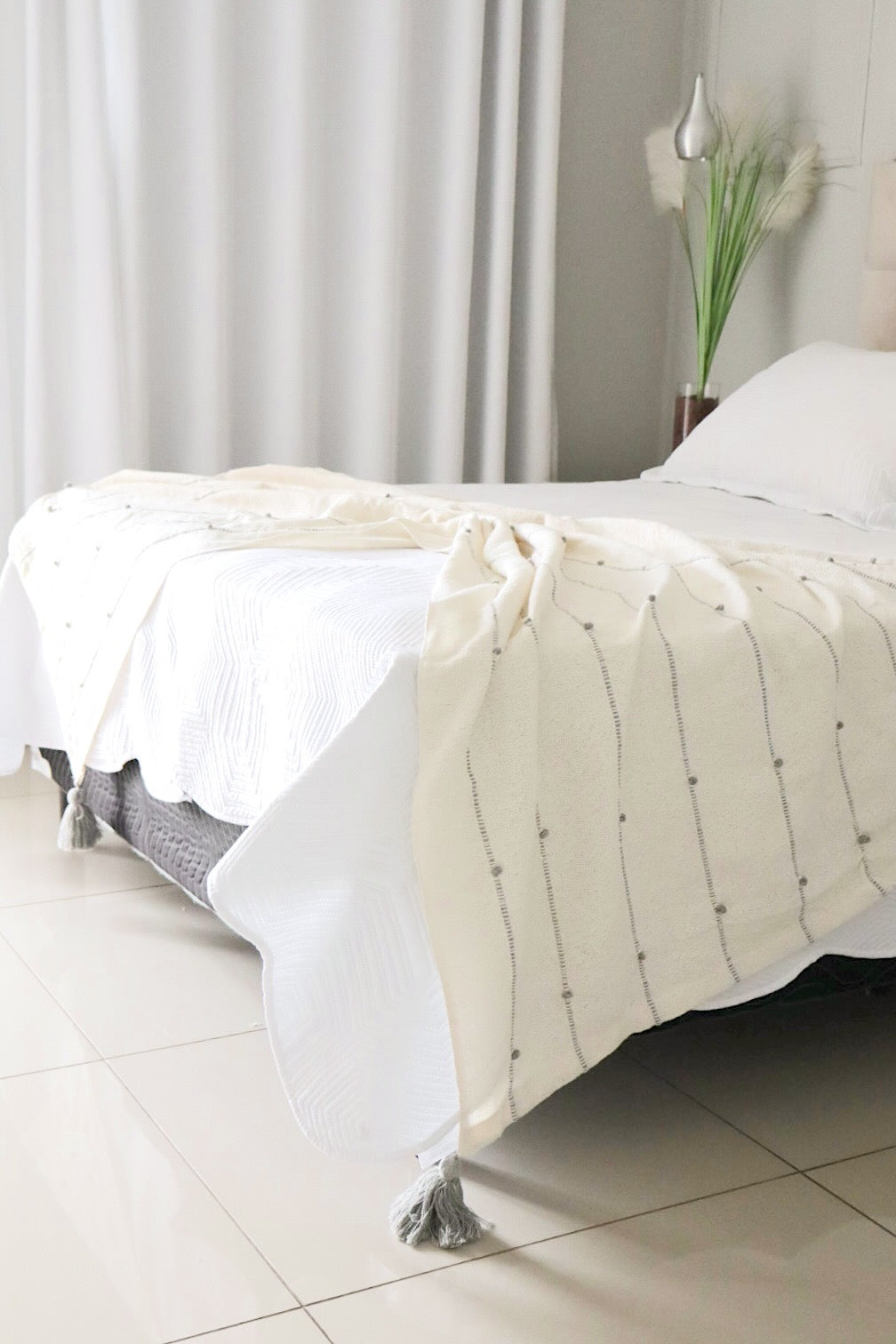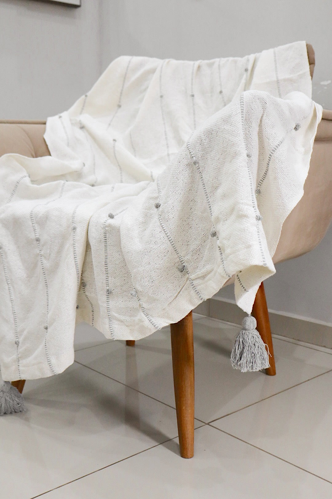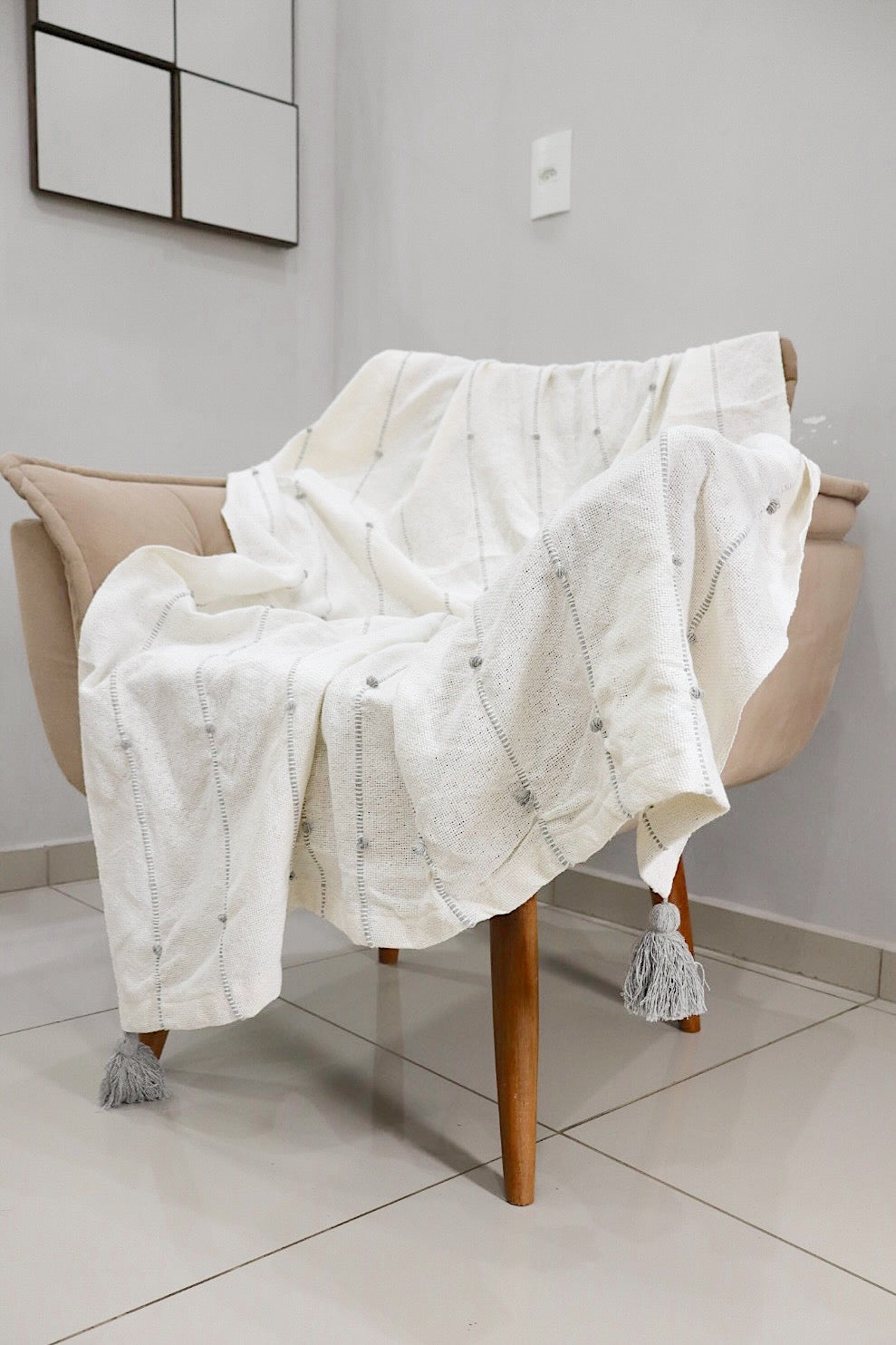 Manta para Sofá / Peseira Pompom Boho Cinza 1,20mx1,80m