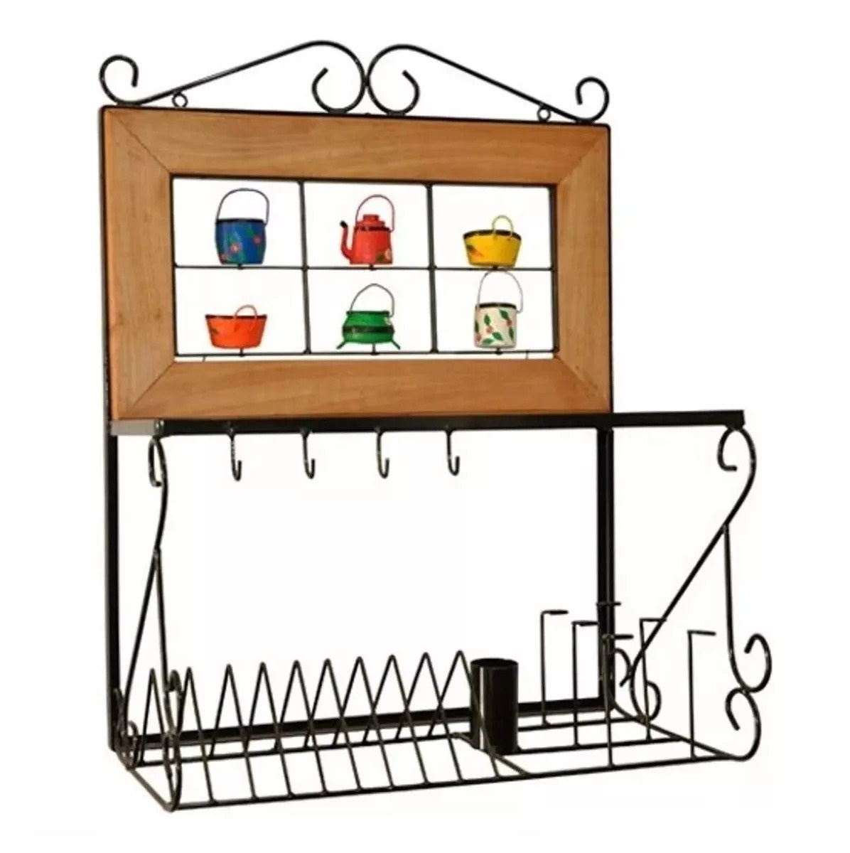 Paneleiro Rústico Escorredor Louças De Ferro E Madeira 60 Cm Panelinhas