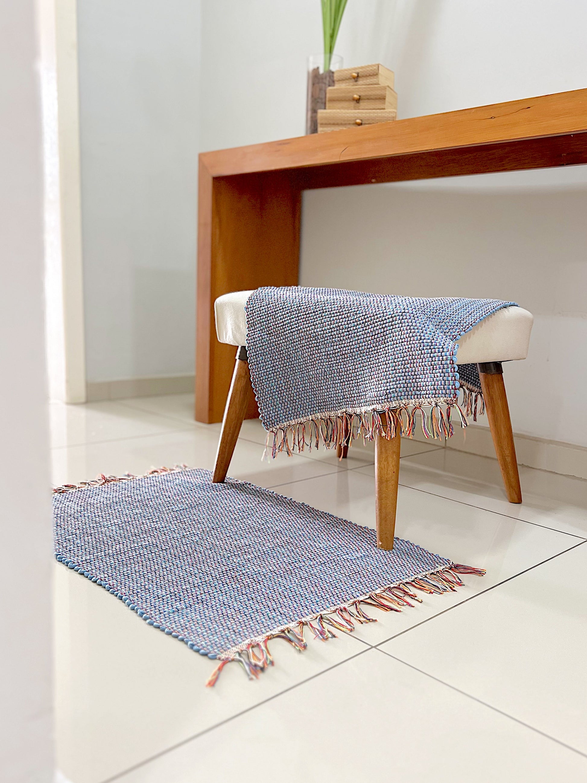 Acabamento com franjas, ótima durabilidade e facilidade na hora de lavar
