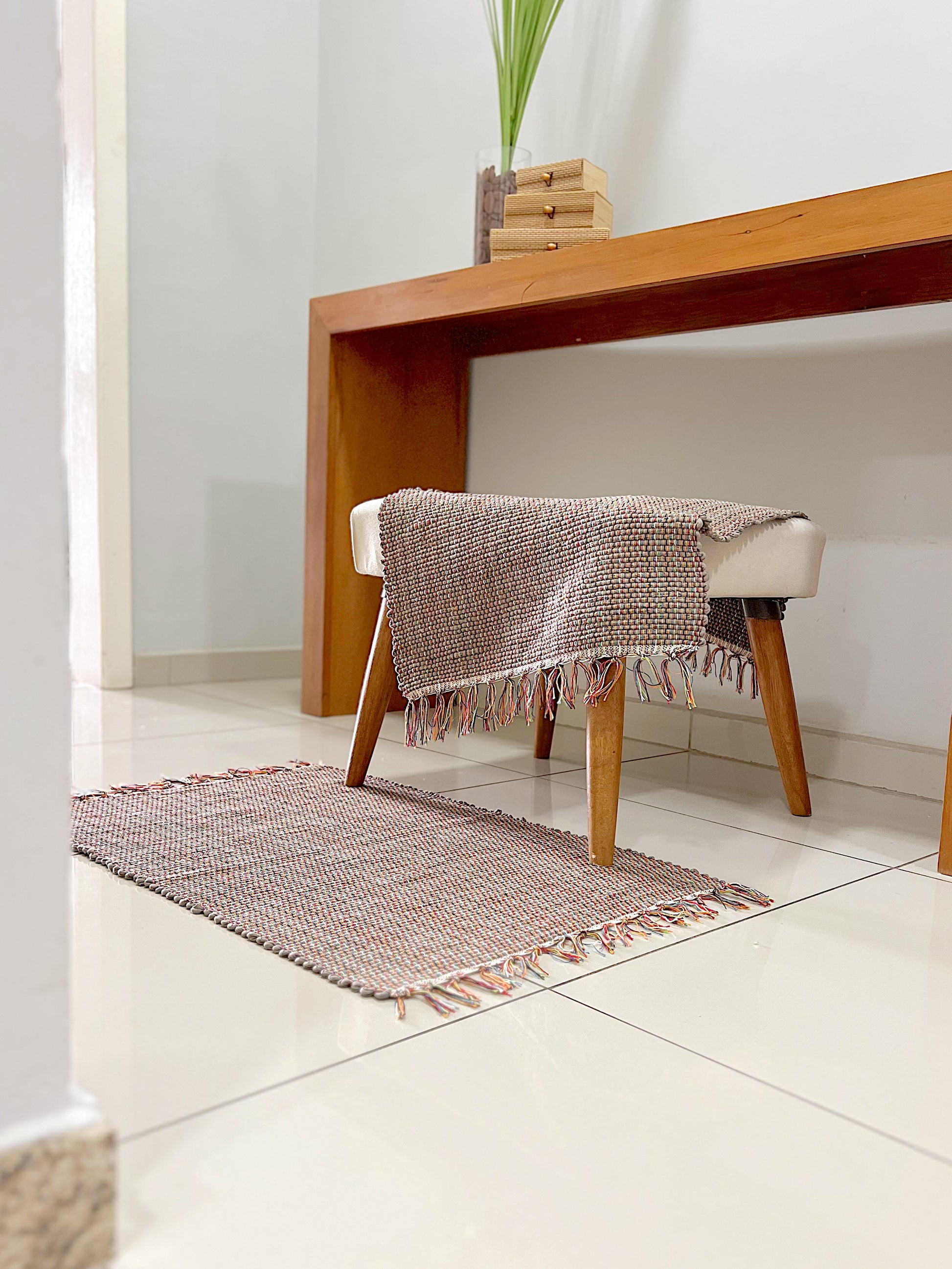 Acabamento com franjas, ótima durabilidade e facilidade na hora de lavar