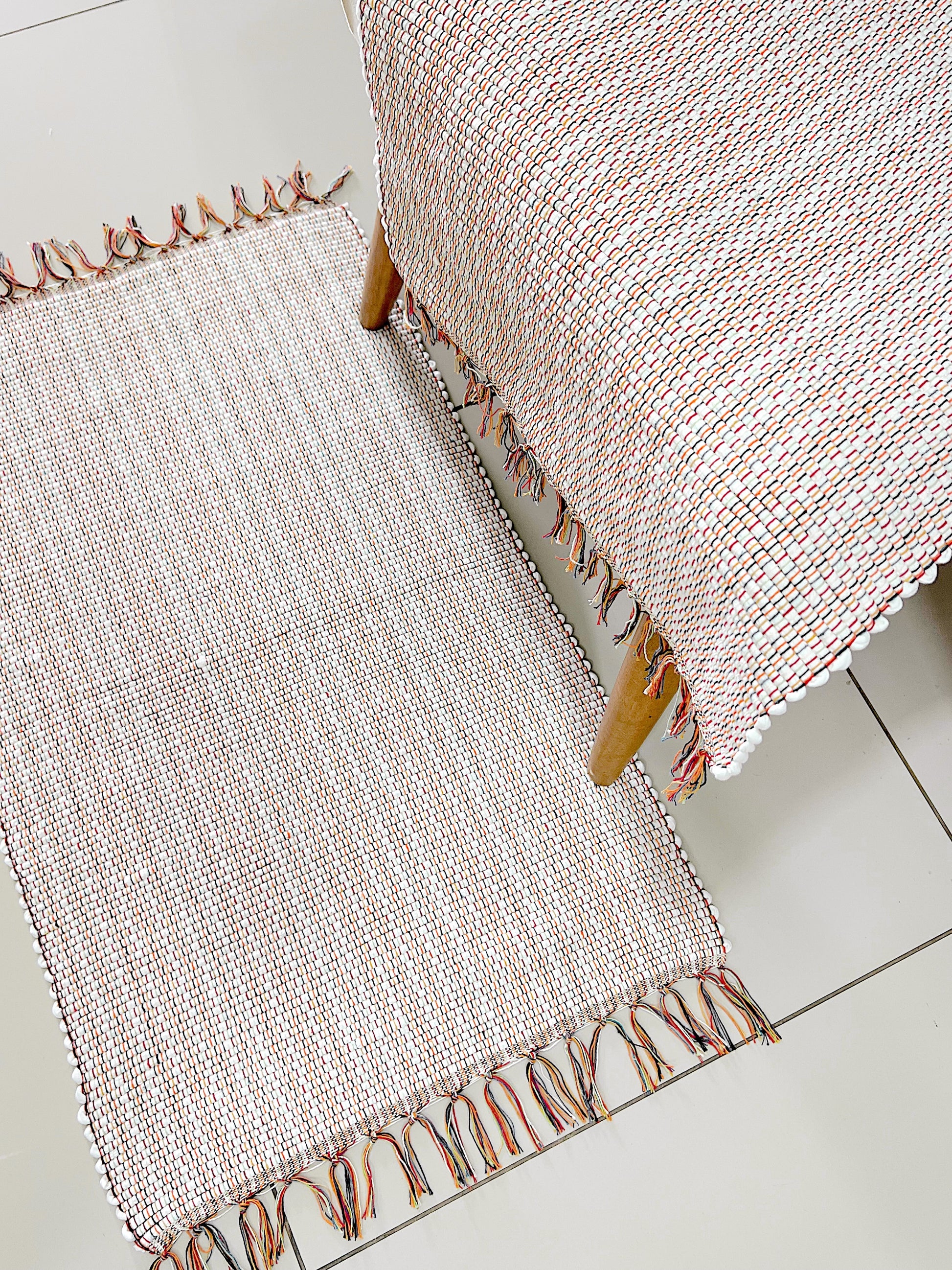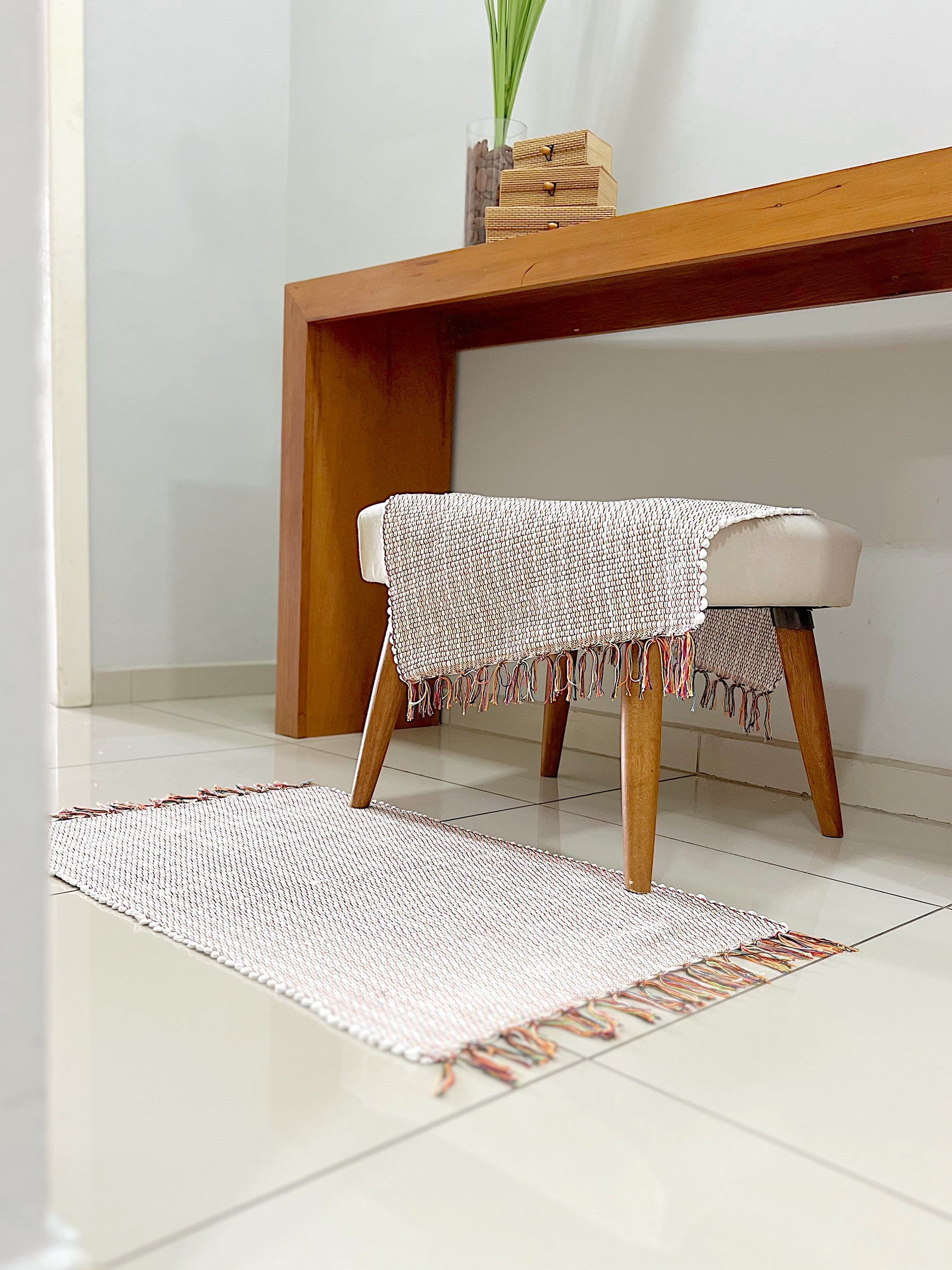 Acabamento com franjas, ótima durabilidade e facilidade na hora de lavar
